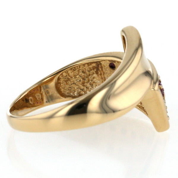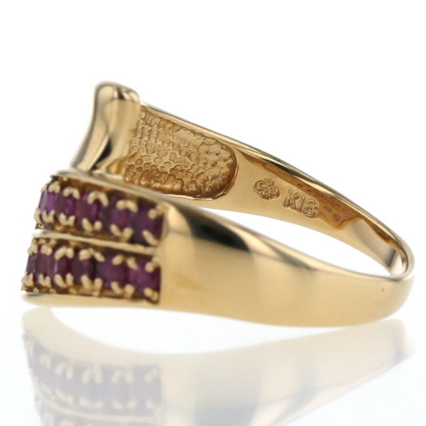 | 商品紹介 | ゴージャス感溢れるデザインにルビーがキラリと輝くゴールドリング。 指先を華やかにすること間違いなしです。 |