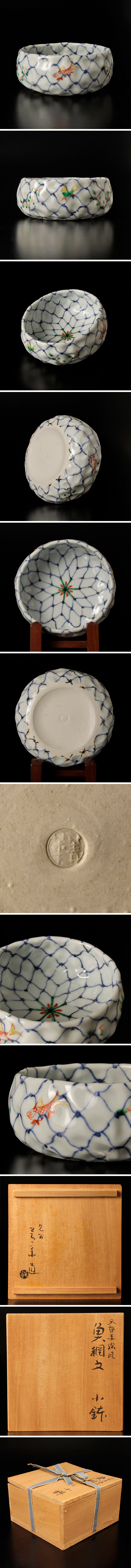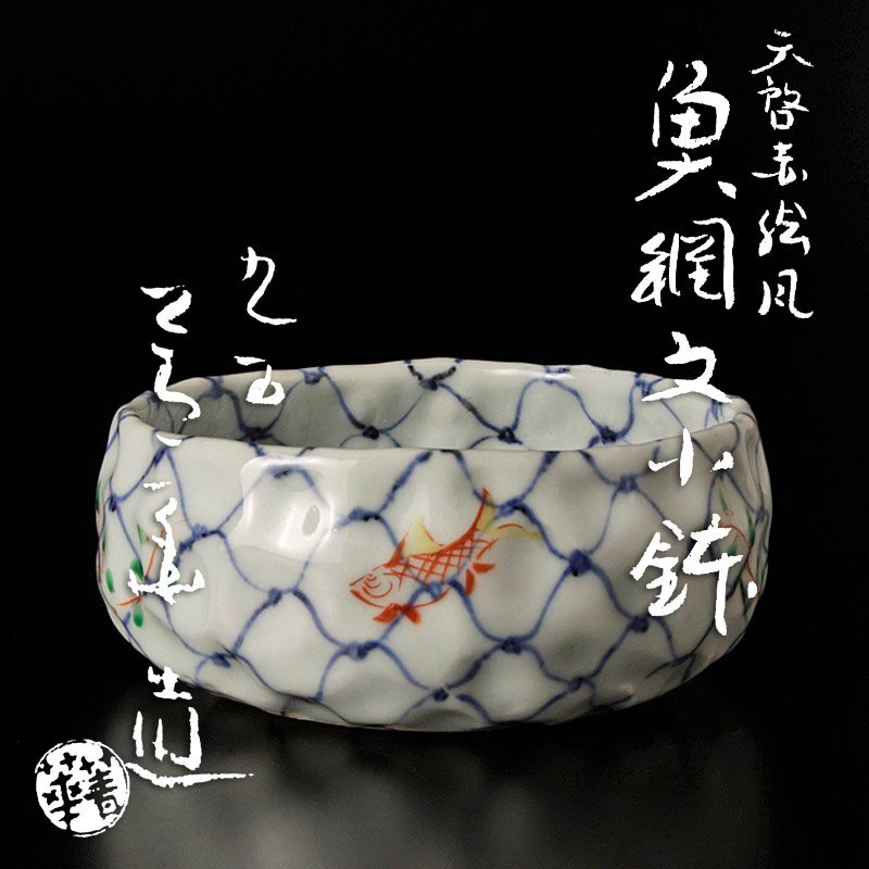 | 【古美味】九谷 四代須田菁華造 天啓赤絵風魚網文小鉢 茶道具 保証品 |
