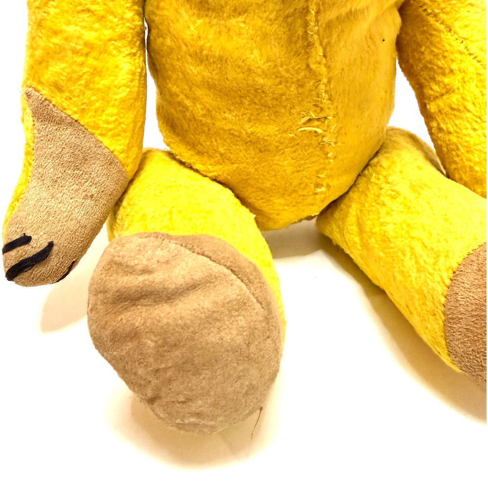 USEDの50's-60's ジョイント式 イエローテディベアです。ベルベット調の鮮やかなイエロー生地に、手足とマズル部分のみスエード風素材を組み合わせたドイツ製(恐らく)ヴィンテージのジョイントベアです。ガラスアイを使用した1950〜60年代特有の素朴な表情、縦長でスマートなボディバランス、可動式の5ジョイント構造が魅力。東ドイツ〜西ドイツの家庭製・小規模工房製に多い仕立てで、経年ならではの使用感や縫い目のほつれも含めて味わい深い雰囲気に仕上がっています。1点モノの古いテディベアとして、インテリアにもコレクションにもおすすめです。| 出价者 | 信用 | 价格 | 时间 |