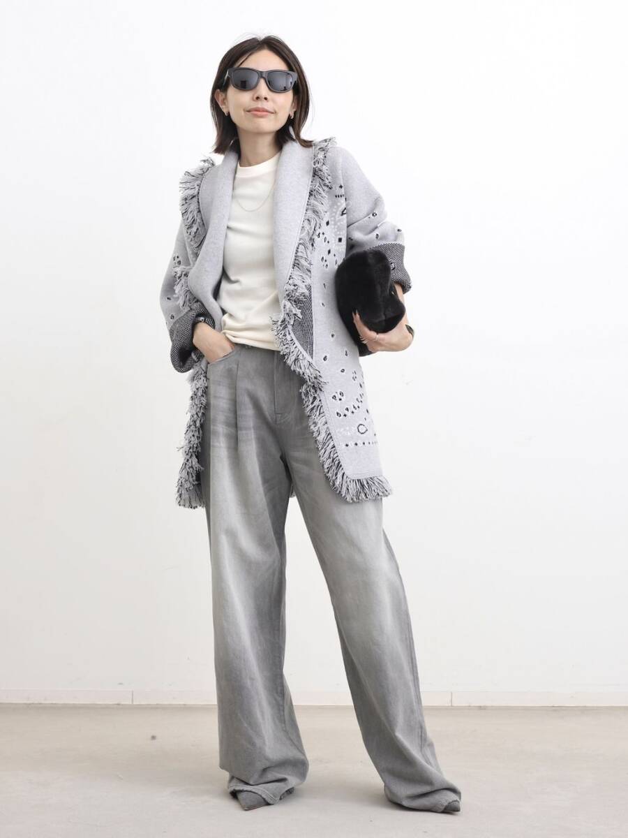 L'Appartement DEUXIEME CLASSE(アパルトモン ドゥーズィエムクラス)購入品 R13の定番モデルでもあり、穿くだけで主役になるような究極のデニム。 その理由はフロントにタックが入った立体的なシルエットと雰囲気のある色落ち。 そしてコットンベースに少しだけリネンが入っていることで、デニムとは思えないほどのやわらかさと色落ちを実現。 ライトグレーのワントーンでかっこいい着こなしは、R13だからこそ叶うスタイルです。 |