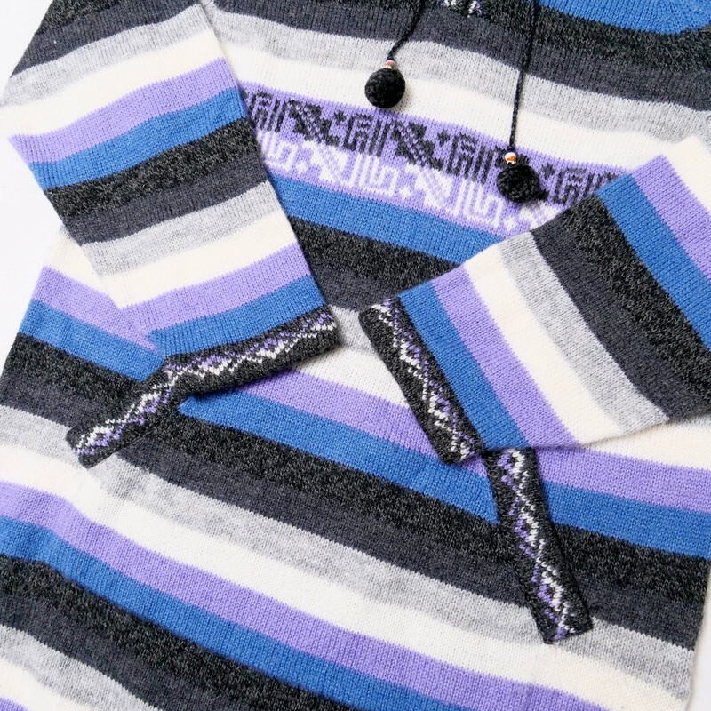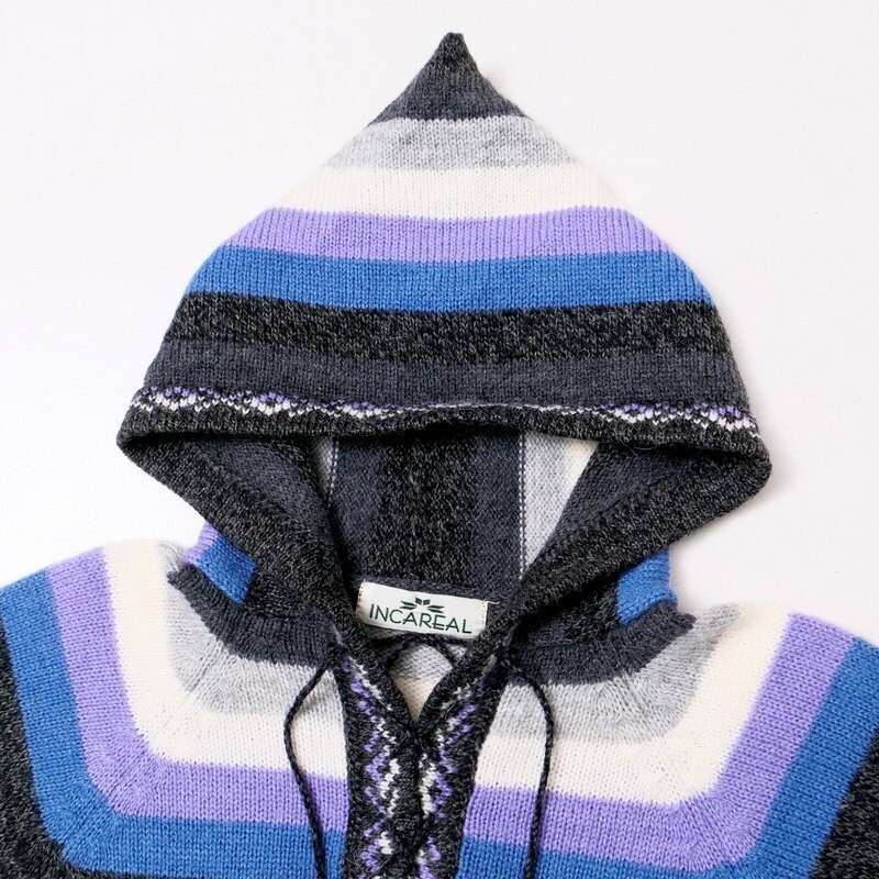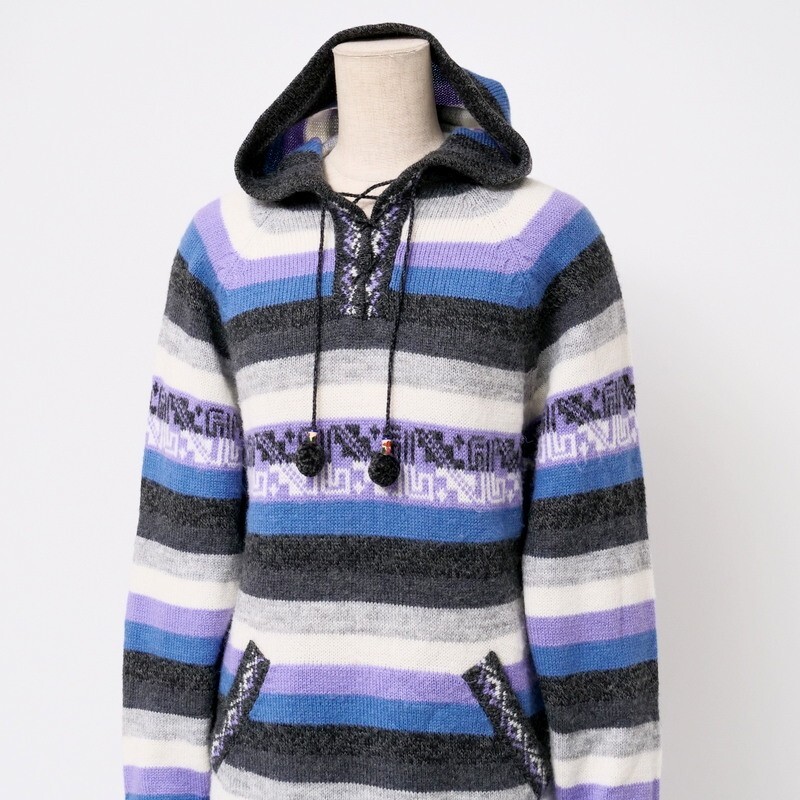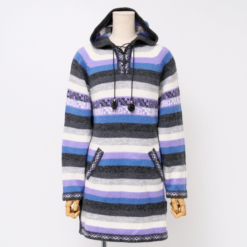 | TJ6252#ペルー製*INCAREAL*アルパカ*ニットワンピース*フーディ*ボーダー*チュニック*プルオーバー*長袖*Msize相当 | |||