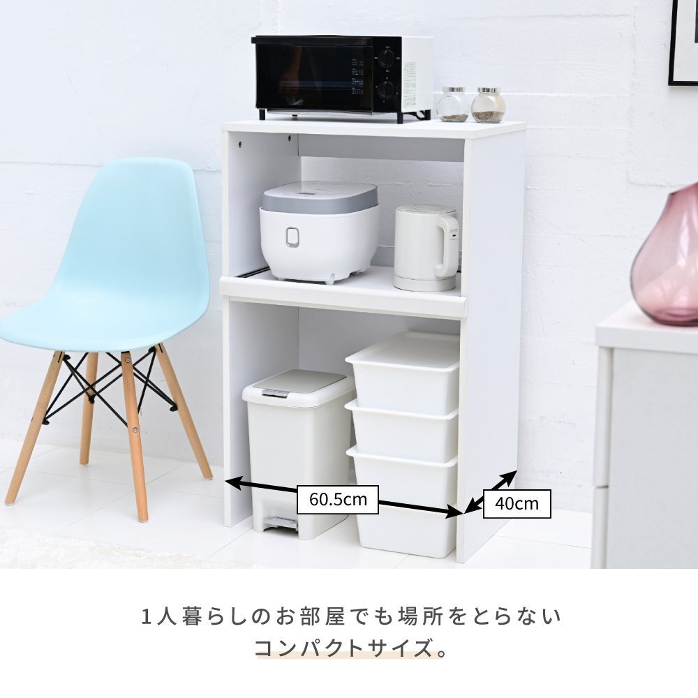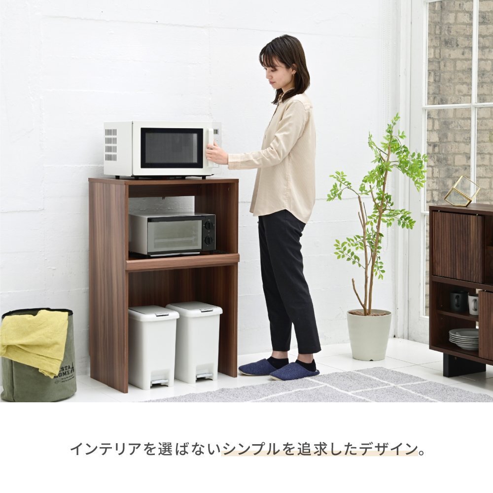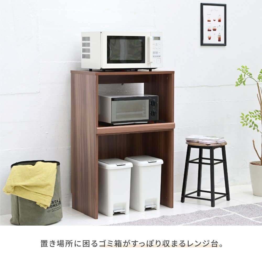 | ゴミ箱の上のデッドスペースを有効活用できるキッチンラック"Mansarda"。 天板にはレンジを置くことができる他、コンセント付きのスライド棚は炊飯器やケトルなどの家電を収納するのにぴったり。 オープン部はゴミ箱だけでなく、小さめのラックなどの収納スペースとしてもおすすめです。 |