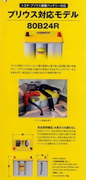 | オプティマバッテリー イエロートップ / OPTIMA BATTERIES YT-80B24R (別名YT-80B24R1 , YT-S2.7J) Rタイプ B端子(小ポール) ●イエロートップはディープサイクルバッテリーで非常にタフネスです!レッドトップの上位モデルとして高いCCAも持ち合わせカーオーディオやサブバッテリー、補助電源、工業機械、電飾パレード、EVカー等に最適です。 最大出力 5520W(-18度/10秒間/EN規定) 適合バッテリー N-55R、S46B24R、EHL-S46B24R、46B24R、50B24R、55B24R、60B24R、65B24R、80B24R、EL-70B24R、ECT 60B24R 等 アイドリングストップ車、ハイブリット車・充電制御車・エコカー対応 正規品 3年製品保証 走行無制限 プリウス適合 プリウスW20、W30、α、PHV 純正品番 S34B20R、S46B24R Rタイプ B端子(小ポール) 電圧 12V 20時間率容量 38Ah(EN-N) コールドクランクアンペア 460CCA クランクアンペア 575CA 内部抵抗 4.3mΩ リザーブキャパシティー 60分 サイクル寿命 350サイクル エンジン始動可能回数 12000回以上 幅 奥行 総高さ/箱高さ 237W x 129D x 227/202H 重量 12.5Kg BCI Group : 51 オプティマ専用充電器も取り扱ってます。 オプション等詳細は こちらのサイトへ 適合バッテリー専用お問い合わせフォーム(SSL使用で安心です) OPTIMA本国サイト | |||||||||||||||||||||||||||||||||||||||||||