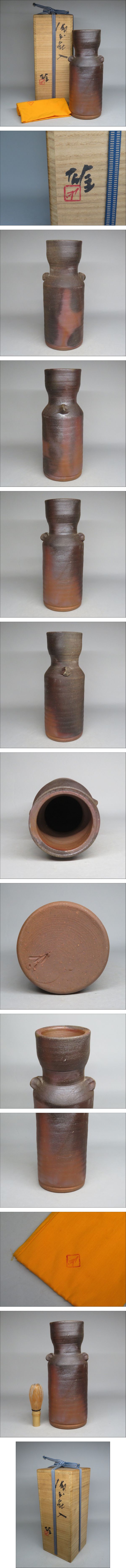 | 人間国宝 備前焼 『藤原雄』作■備前花入 花生 花器 共箱付き | ||