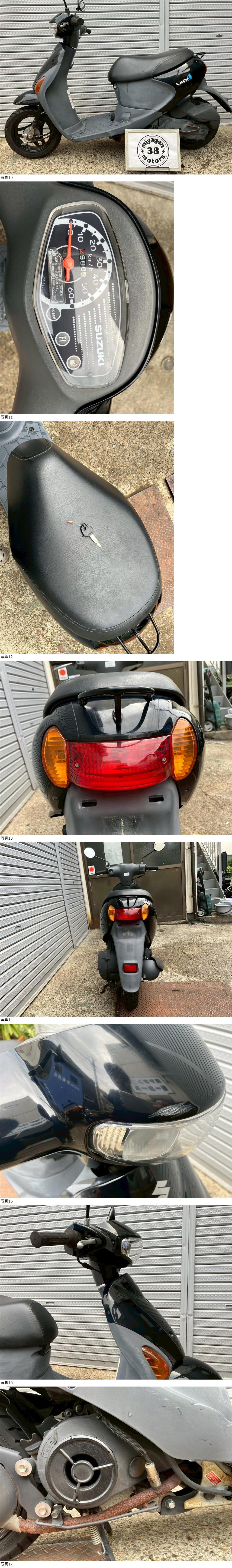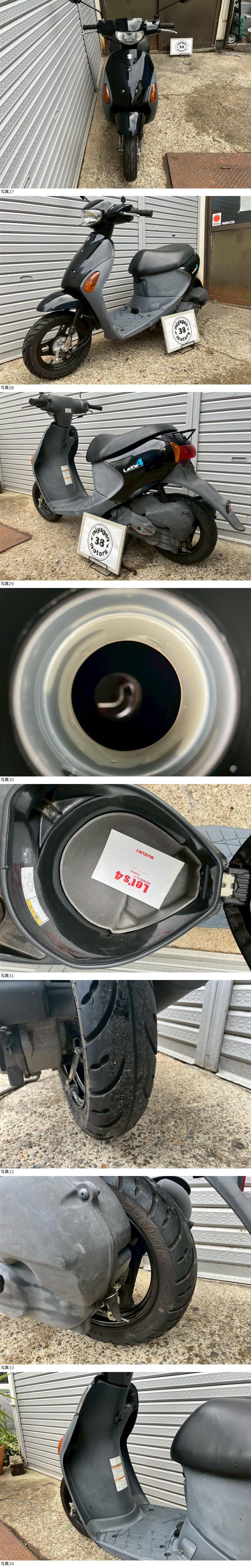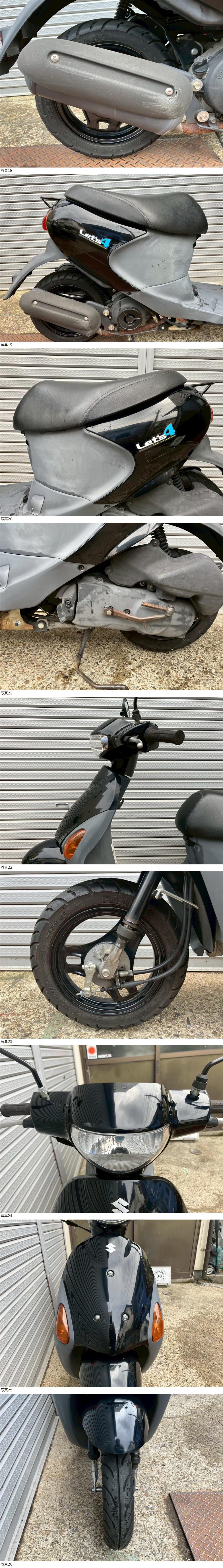 | 商品説明 | この度は当出品車両をご覧頂きまして誠に有難う御座います。 他にも複数台出品がございますので宜しければご覧ください! ご入札頂けた際には文末にありますお取引詳細にご同意頂けたものとさせて頂きます。 下記車両詳細・お取引詳細になりますので必ずご一読くださいませ! また、直接お越しいただいた方にその場で販売することもあるため予告なしに出品の取り消し等をする場合も御座います。 よって、落札前には一言コメント欄にてご一報頂けますと幸いです。予めご了承下さい。 〜〜車両詳細〜〜 メーカー:スズキ 車種:レッツ4 年式:2008年式 色:黒 鍵:純正キー1本 排気量:50cc 走行距離:走行距離疑義車輛 燃料供給装置:インジェクション フレームNo:CA45A-15**** 別途 5500円で販売証明書発行致します お気軽にお問合せ下さい。 ・外観 大人気のレッツ4(CA45Aモデル)が入荷いたしました! 通勤・通学に最適な一台です! 燃費が良く、経済的な一台です♪ * * * |