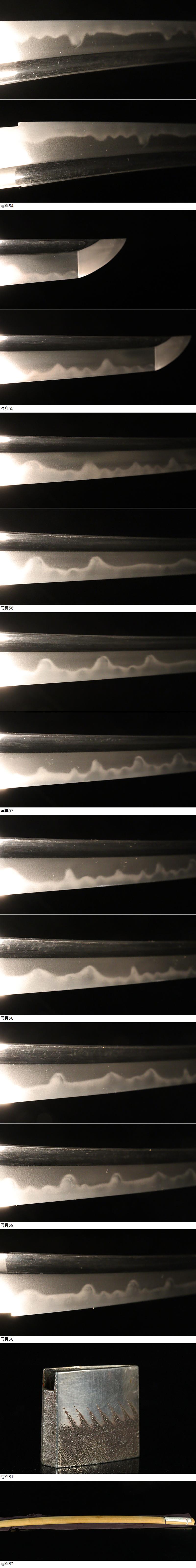 | ■刀剣のサイズ表示について 元幅・・・焼出し付近を測定しております 先幅・・・横手筋付近を測定しております 元重ね・・・焼出し付近の厚みを測定しております 先重ね・・・横手付近の厚みを測定しております (多少の誤差はご容赦ねがいます) ■銃砲類のサイズ表示について 全長・・・銃身先から台木尻までを測定しております 銃身・・・台木を除いて金属部分を測定しております (多少の誤差はご容赦ねがいます) 当社が出品する刀剣類は、入手した時の状態のまま出品しております。 ハバキ、小道具等も当社で調整したり付け替えたりはしておりませんので、合わせではないかというクレームは一切受け付けません。 刀身の疵も隠すことなく載せておりますので写真をよくご覧になってご入札ください。 疵に関して、説明がない等のクレームは一切受け付けません。 写真ではわかりにくい部分は質問欄やお電話でお問い合わせください。 但し、説明欄に表記のない刃切れに関してのみ返品やご相談に応じます。 ※ご落札しご購入されお手元に届いてから20日以内に 登録証に記載されている各都道府県の教育委員会にご連絡し 登録証の所有者変更を必ず行ってください | |||