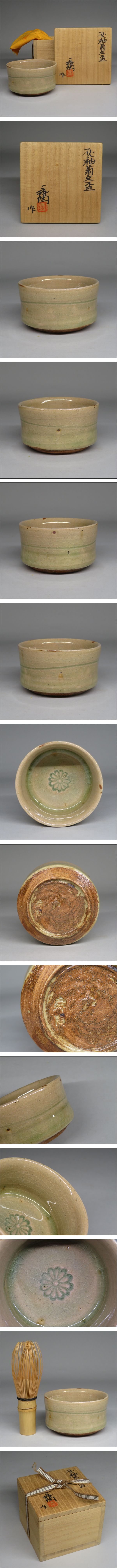 | 「加藤舜陶」作 龍窯 灰釉菊文盃 県無形文化財 茶道具 共箱 | ||