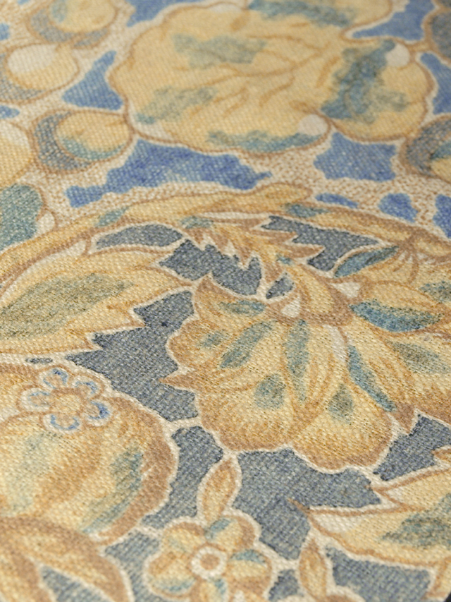 沈んだ亜麻(あま)色の地に、唐花草の文様が染められた、綿の和更紗のはぎれです。 江戸末から明治期ごろにつくられたと思われるアンティークのお品です。太い糸味のほっこりとした手ざわりの綿地です。 画像のとおり、アンティークなりの全体的なうっすらとした褪色がありますが、そのほかに目につく大きなしみやよごれ、褪色などのダメージはなく、この時代のものとしてはとてもきれいな状態です。布地の力はあります。 |