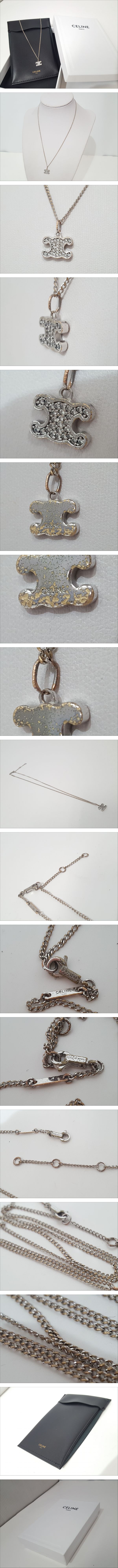 ※佐川急便の場合、離島など別途中継手数料がかかる地域が御座います。 その場合はお振込みを追加でお願いする場合が御座います事、 事前にご了承の程、宜しくお願い致します。 [商品名] 1円スタート CELINE セリーヌ トリオンフ ストーン付き ペンダント [サイズ] 全長約40/42/44cm, トリオンフモチーフ約0.8×1cm [素材] ストーン×金属素材 [カラー] シルバー系 [仕様] ケース付き 箱付き [状態] トップ裏面とチェーン全体にメッキハガレ、金属の変質箇所、 トップにキズとくすみが御座います。