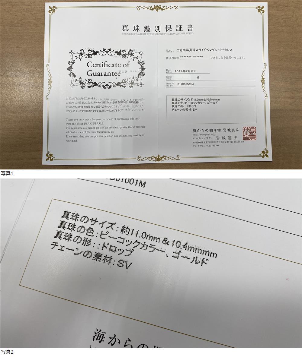 | 商品説明 | 【商品名】 【美品】2粒南洋パール 黒蝶パール スライドペンダントネックレス 岩城真珠 ドロップ型 ピーコック ゴールド SV925 約10.4㎜&約11.0㎜ 【商品情報】 1点の商品となります 【状態説明】 美品! 岩城真珠 2粒南洋真珠スライドペンダントネックレス 約10.4㎜&約11.0㎜ カラー:ピーコック系・ゴールド系 パールの種類:タヒチ黒蝶真珠・南洋白蝶真珠 パールの形:ドロップ型 チェーン:SV925 重量:7.4g 状態は写真にてご確認の程お願いします 上記をご理解の上、入札下さい コレクションや普段使いにいかがでしょうか? 管理NO:993B