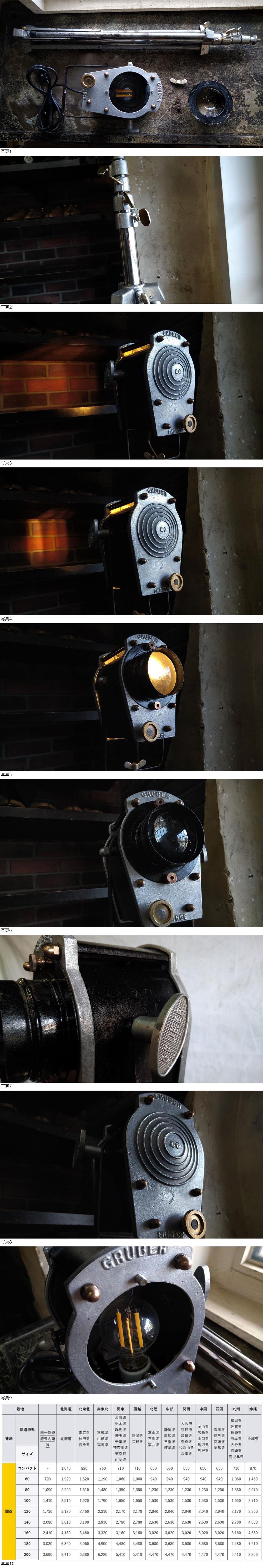 お送りする際は、ランプと三脚に分けてお送りします。