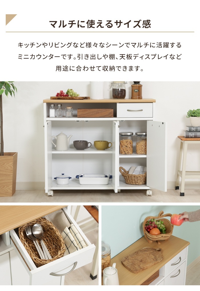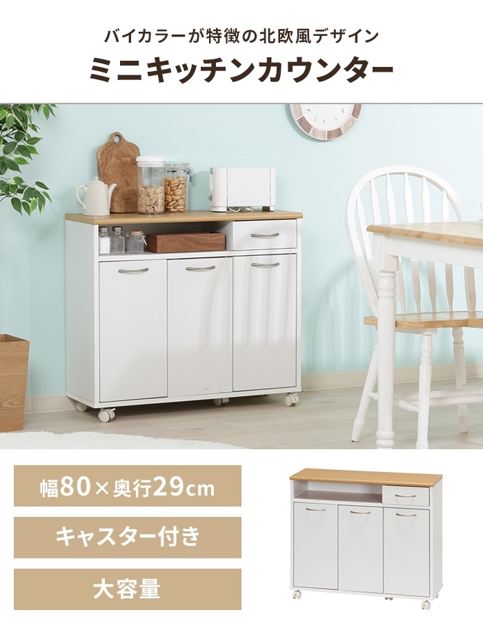 | キッチンカウンター ミニサイズ 幅80cm キャスター付き 食器棚 キッチンボード レンジ台 ロータイプ シンプル インテリア 棚 キッチンラック カウンター キッチン収納 レンジボード カップボード 小さめ キャスター ストッカー 移動ラクラク 引き出し付き 収納家具 キッチン ダイニング リビング |
