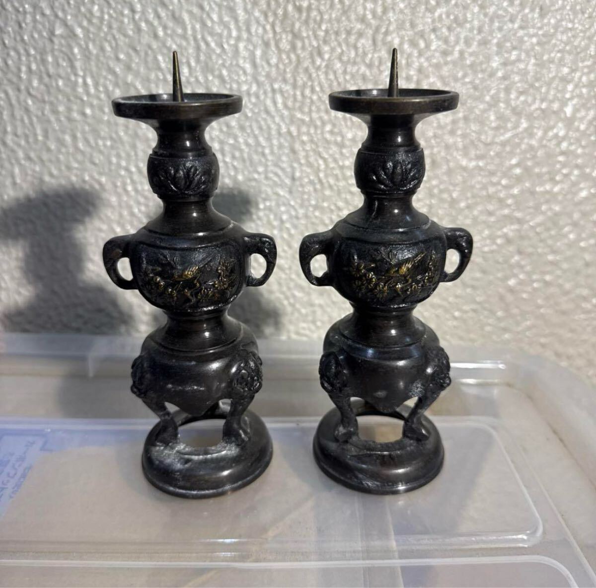 黒色の鋳物に金色装飾が施された燭台(ローソク立て)一対です。| 出价者 | 信用 | 价格 | 时间 |