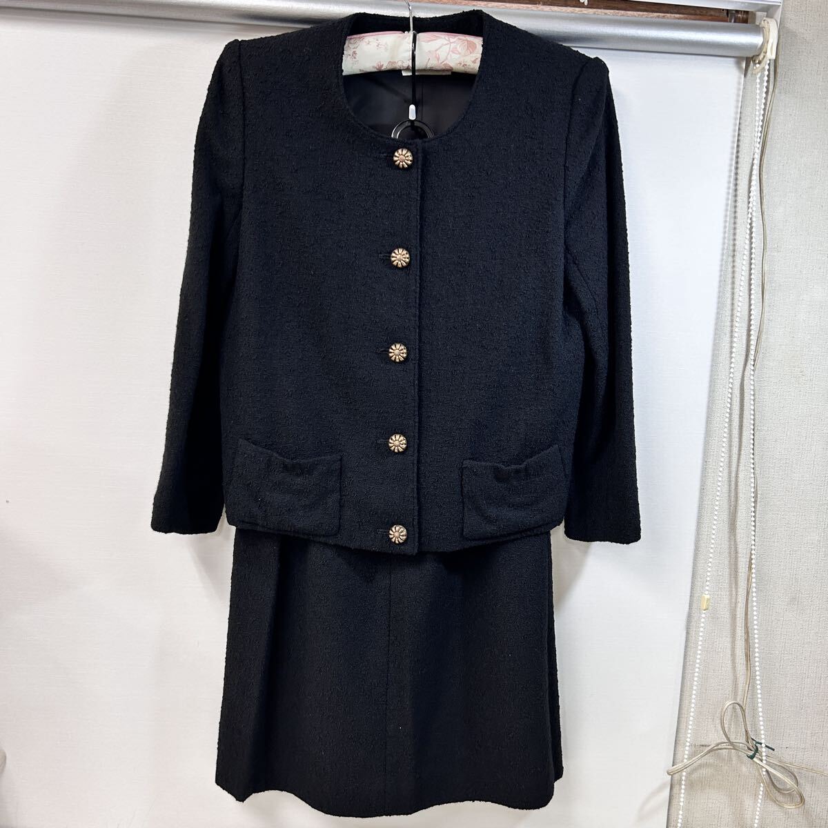 ★美品★ INGEBORG インゲボルグ ジャケット スカートセット 毛90% セットアップ 黒 スーツ ツイードジャケット (08197F