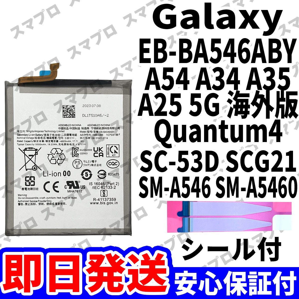 Galaxy A54 5G,A34 5G,A25 5G 海外版,A35 5G,Quantum4 SC-53D SCG21 SM-A546 SM-A256 SM-A346 SM-A546S SM-A356B 共通バッテリー EB-BA546ABY ・バッテリー本体 ・両面テープ ※商品画像はイメージとなります。 |