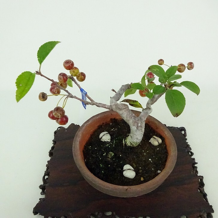 | ■植物ですので撮影時期や季節によって剪定などの手入れにより写真から変化がございます。撮影日をご確認のうえ、ご注文ください。 ■翌年の実付きをよくするために観賞後の11月末~12月にかけて摘果しています。お届けの商品にはカイドウの実がない場合がございます。 【海棠盆栽】 深山海棠は植物学的にはズミの総称です。山野の日当たりの良い場所に生えています。別名をコリンゴともいいます。名前の由来は「染み」で樹皮を黄色の染料にしたことによります。花は白色か淡紅色。秋に熟する実は食用。ここでは、赤実のズミをミヤマカイドウ。黄実に熟するものをキミズミとして分けています。 |