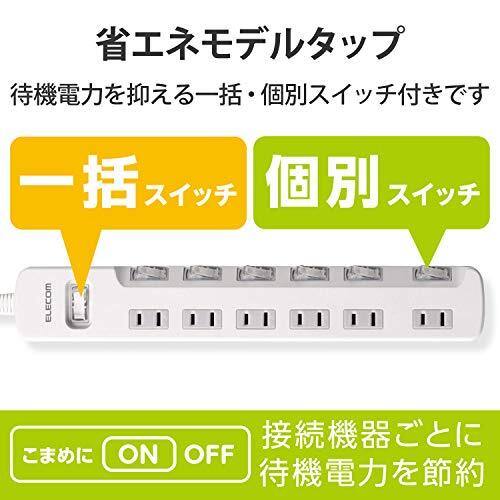 商品紹介 仕様 本体差込口形状:2ピン 本体差込口個数:6個口 プラグ仕様:2ピン・スイングプラグ 3ピン→2ピン変換アダプタ付属:× コード長:1.0m 定格:125V・15A・1500W スイッチ:集中・個別両用スイッチ 雷ガード:× ほこりシャッター:× 絶縁キャップ付きプラグ:× 差込口キャップ付属:× 通電表示ランプ:× 二重被ふく: 抜け止め機能:× スイングプラグ: マグネット:× 壁掛け用フック: モジュラジャック付:× カラー:ホワイト 材質:本体:ABS樹脂、プラグ:PVC 差込口:ユリア樹脂 外形寸法:幅310mm×奥行50mm×高さ32mm コード部分及びプラグ部分を除く 質量:372g 使用可能地域:本製品は日本国内の電源を想定して設計されていますので、日本国外ではご使用いただけません。 説明 待機電力をまとめて節約できる一括スイッチと、接続機器ごとにON/OFFでき、個別に節約できる個別スイッチが付いた省エネタップです。 ACアダプタや大きめのプラグを接続してもスイッチに干渉しにくい、斜め配置のスイッチを採用しています。 差込口には耐熱性に優れたユリア樹脂を使用していますので、万一の発熱の際にも融解しにくく、電気火災の防止に有効です。 ACアダプタを接続しても隣の差込口に干渉しにくいように、1個の差込口を離れて配置しています。 プラグの刃の根本に絶縁キャップが付いており、トラッキング現象による火災の防止に役立ちます。 電源コードには、社団法人日本配線器具工業会規格(JWDS0010)に適合した二重被ふくコードを採用していますので、断線や被ふく破れによる感電・火災の防止に有効です。 狭い場所でも配線しやすい180°スイングプラグを採用しています。 プラグ仕様は2ピン式で、便利な6個口タイプです。 商品に関するお問い合わせ エレコム総合インフォメーションセンター TEL. 0570-084-465 FAX. 0570-050-012 受付時間 / 10:00~19:00 年中無休 ご注意(免責)必ずお読みください 本製品は日本国内の電源を想定して設計されていますので、日本国外ではご使用いただけません。