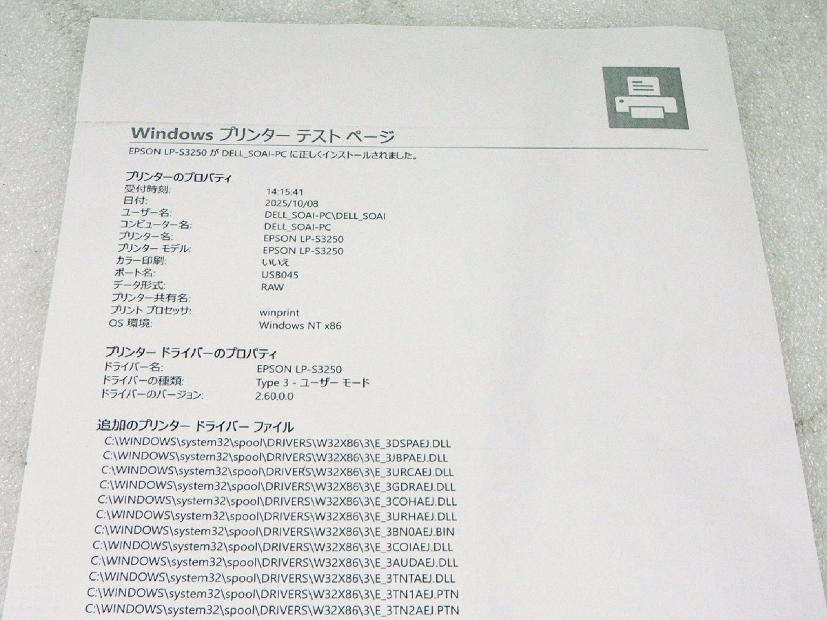 | 状態 | テスト印刷良好です。 使用枚数 3069枚。 トナー残 20% 給紙ローラー各 100%。 |