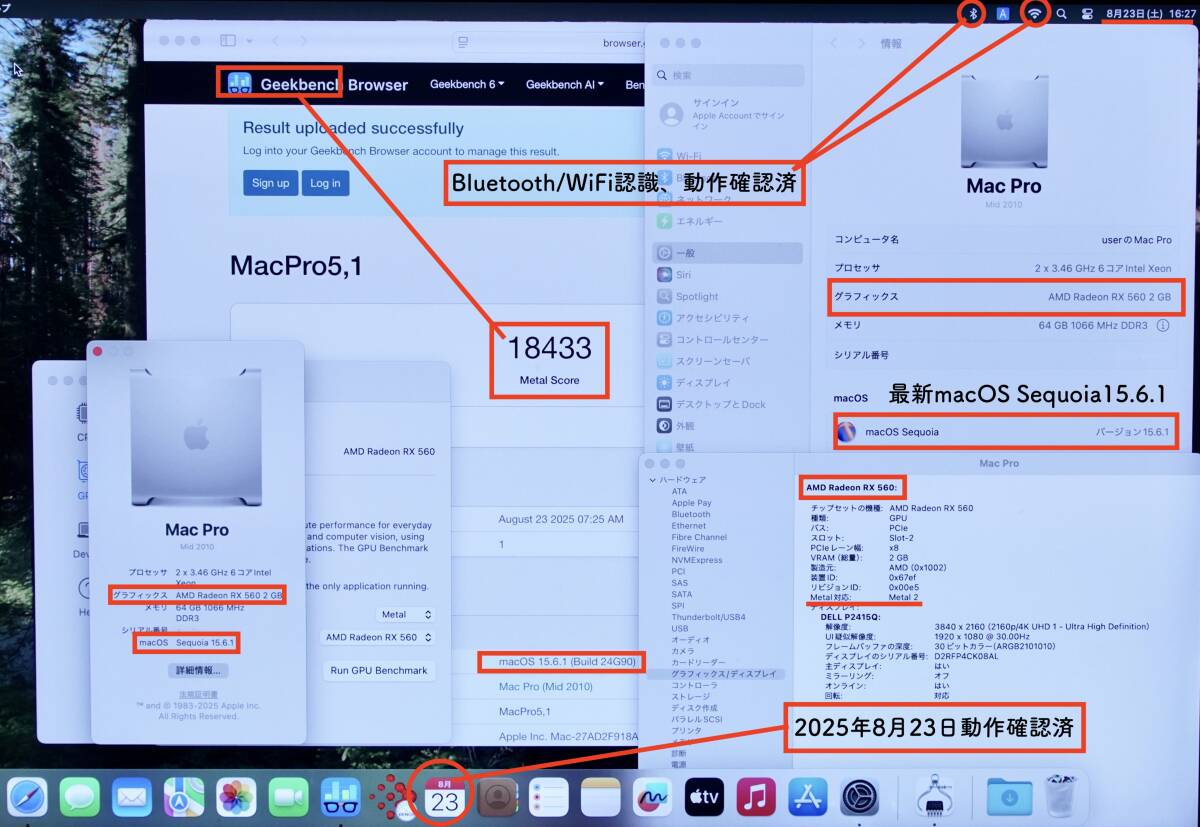 2025年11月3日に最新macOS Sequoia15.7.2と最新macOS Sonoma14.8.2がリリースされました。RX560 2GBでも動作確認しています。