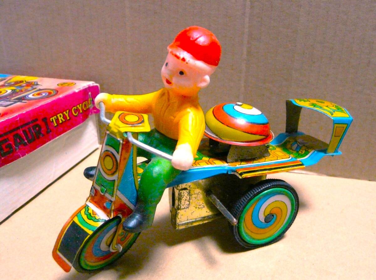 | 商品説明 | ブリキ トライサイクル JAGAURI TRY CYCLE 中古品です。 レプリカ品表示です。 ゼンマイは巻けない状態です。箱はダメージがあります。 | |