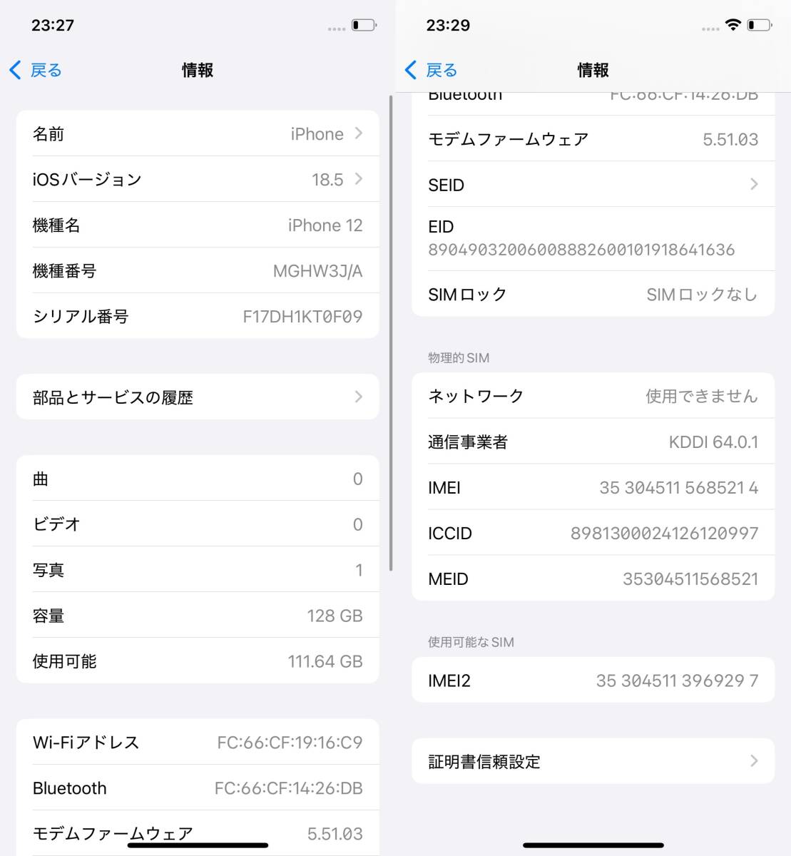 | 製造番号 | 353045115685214 |