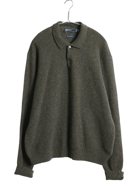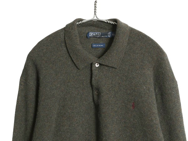 | 商品名 | 90s ポロ ラルフローレン ニット ポロシャツ メンズ XL オールド ラム ウール ハイゲージ セーター 大きいサイズ シンプル カーキ グリーン |