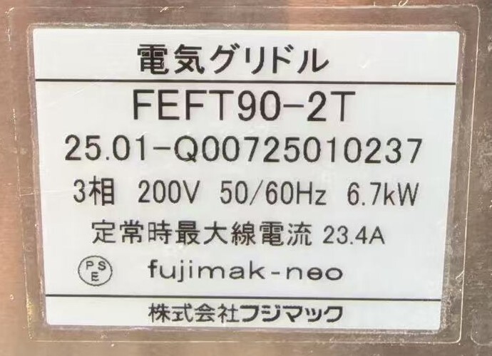 | 【中古】電気グリドル フジマック FEFT90-2T 2025年 三相200V×2 | |