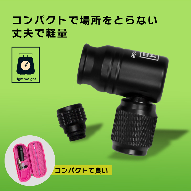 瞬間エアチャージできるので人気の高いCO2ボンベ式の携帯空気入れ コンパクトで収納場所をとらない、空気を入れる作業は力を使わず楽にできる。 パンク修理作業も早々と終わらせれます。 使用も簡単でボンベをインフレーターに装着するとボンベを緩めてCO2を開放します。 フレンチバルブ(仏式)、米式、英式と3バルブ対応なのでロードバイクやクロスバイク、MTBなど様々な自転車に。 [操作しやすいL字タイプ] ストレートタイプと違い横で作業ができみやすい。 [3バルブ対応] フレンチバルブと米式は切替不要でお使い頂けます。 英式は変換アダプタを使用してお使い頂けます。 [CO2ボンベ] 12gと16g(ネジ有り)CO2カートリッジに対応しています。 [軽量で丈夫] 軽量なので携帯ポンプとしてとても重宝します。 アルミ合金材質 商品内容CO2インフレーター(携帯空気入れ) ※CO2カートリッジは別売りです。 材質アルミ合金材質 バルブ仏米英対応(英式はアダプタをお使い下さい) ※ネジ山付きの12g & 16gカートリッジに対応 サイズ横幅26.4x高さ33.3x奥行15mm 重量14g 操作手順附属説明書にてご参考ください。 ※出荷時は変換アダプターをヘッドにつけています。仏式/米式をご利用の場合は外して下さい。 《ご注意》 ・商品は入荷によりキズがある場合があります。 ・保証対象外になりますのでご了承お願い致します。 ・ディスプレイ環境により実物と色が異なる場合が有ります。 ・入荷時期により予告無く一部仕様変更する場合が有ります。 | |