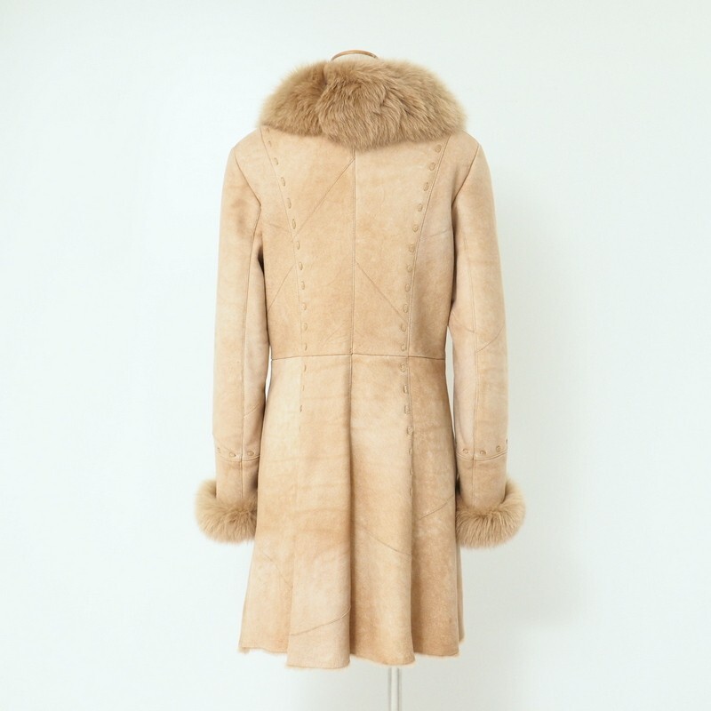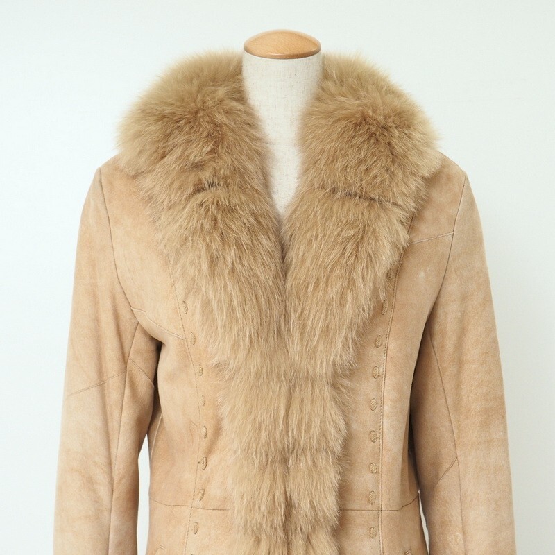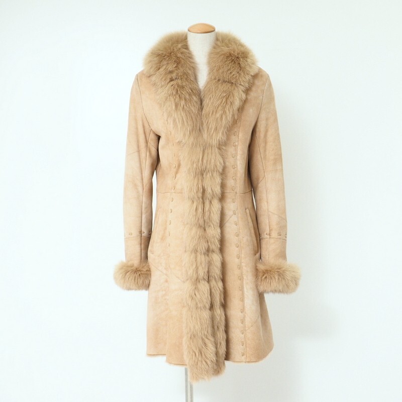 | TJ6864〇リアルムートン 羊革*フォックスファートリム コート*フリーサイズ*ブラウン系 | |||