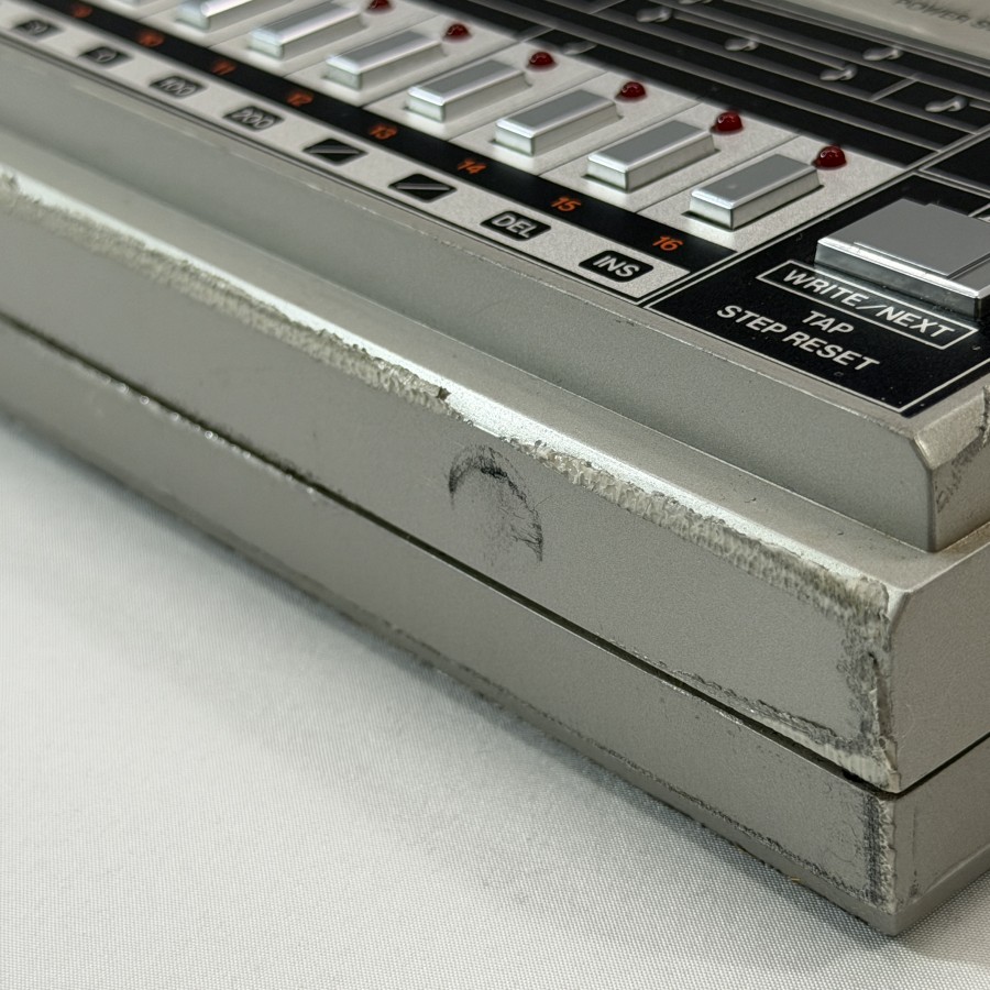 | ご覧いただきありがとうございます。 【商品内容】 弊社備品の9V電源アダプタにて、通電確認済み。 MANUAL PLAYにて各音色(BD / SD / LT / HT / CY / OH / CH)の発音を確認しました。 LEVELノブにて音量変化を確認しています。 PATTERN PLAYにてシーケンサー動作、START動作およびTEMPO可変を確認しました。 OUTよりアンプに接続し、音出し確認済みです。 短時間・簡易確認のため、SYNC端子や個別アウト等の細かな動作は未確認です。 年代物につき、外観には使用感があります。また、カバーが付着したのか、本体の剥がれか判断できかねますが、劣化が見受けられます。 電池での駆動も試みましたが、通電できませんでした。液漏れ跡のようなものが見受けられます。 状態より、ジャンク扱いでの出品といたします。 パーツ取りやメンテナンス前提でご検討いただける方のみのご入札をお願いいたします。 出品物は画像のリズムマシン本体・専用カバーのみでございます。※9V電源アダプタは付属いたしません。 あくまでも現状品・短時間での確認の為、落札後の保証・返品交換は致しかねます。 尚、経年によるスレやキズ・汚れ等がございます事を予めご了承ください。また、細部にわたる状態は全て記載出来ない為、瑕疵や些細な欠損の未記載・見落しのある場合もございます。ご理解の上、入札のご検討をお願い致します。 ○詳細なイメージ・状態は掲載写真にてご確認・ご検証ください。 ○写真はパソコン機種やモニターの解析度により現物の色味と多少異なる場合がございます。 【商品価値と入札について】 お客様の入札に委ねられた落札価格が商品としての価値・相場価格となります。 オークションマーケットの主旨をご理解いただきご自身の責任にて商品価値の見極めと入札のご判断をお願い致します。 【オークション入札の注意事項】 トラブル防止の為、当方の記載内容とお客様の見解に相違がある場合は入札をお控えください。 誠に恐れ入りますが、新規ID及び評価の少ないお方は入札をご遠慮ください。 いたずら防止の為、著しく評価の悪い方は当方の判断により入札を取り消させていただく場合がございます。 また、入札中において終了間際の取り消し・終了後のキャンセルは固くお断り致します。 落札終了日より5日以内にご連絡が無い場合は不本意ながら取消し手続きさせていただきます。予めご了承ください。 原則ノークレーム・ノーリターンにて入札をお願い致します。 |