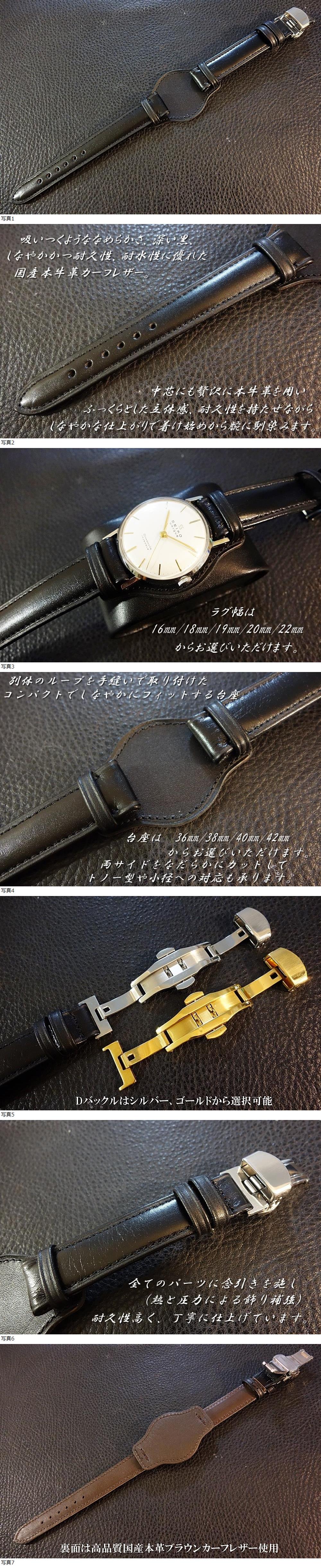 | ◆台座付 D-Buckle Vintage Belt◆国産本牛革カーフ カスタムオーダー(ラグ幅/台座幅/バックルカラー) BLACK 強力撥水 日本製 受注生産(納期10日前後) |