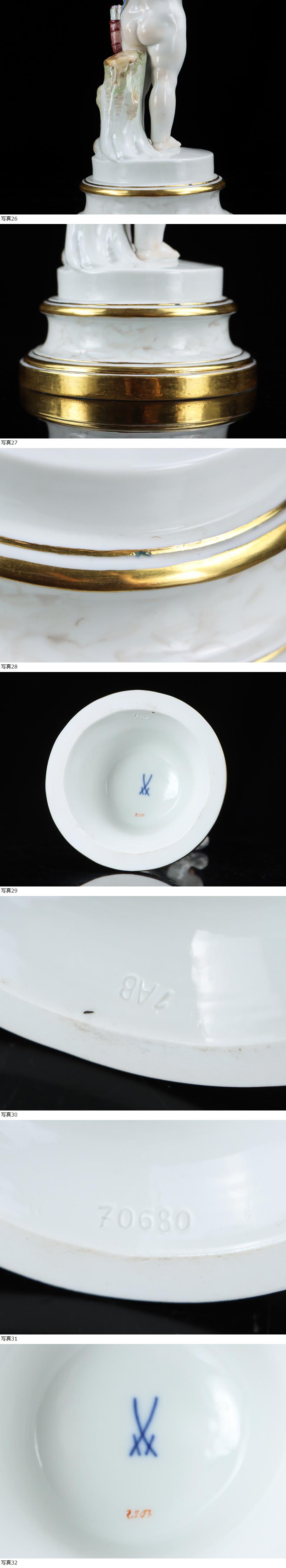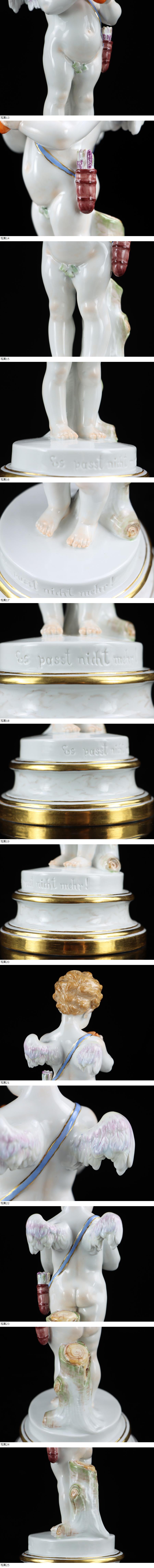 サイズ(約) 高さ 20.5㎝/直径 10㎝ 重量 580g 付属品 - 希少厳選作品 マイセン Meissen 壊れたハート 天使人形 エンジェル はにかむ天使 シュワーベ作 1級高さ20.5㎝ 最高級名作品! 本物保証 原型制作は1880年頃、シュワーベ氏(Schwabe)によるものです。 マイセン人形の中でも屈指の有名作品群ですが、その作者であるシュワーベ氏は全くと言って良いほど素性が知られておらず、謎多き芸術家です。 1837年に生まれ、1899年までマイセン磁器のモデラーを務めていたこと以外何も知られていません。 大変大ぶりな作品で、存在感は抜群です! 状態、時代品になるため若干の時代の汚れはありますが、致命的な傷みなどなく良品です、綺麗な作品になります! 大事にしていただける方の入札お待ちしております! |