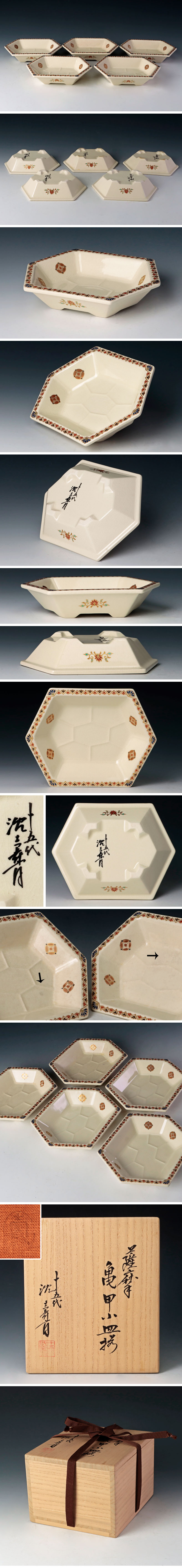 | 【古美味】十五代沈壽官 薩摩 亀甲小皿揃 五客 茶道具 保証品 |