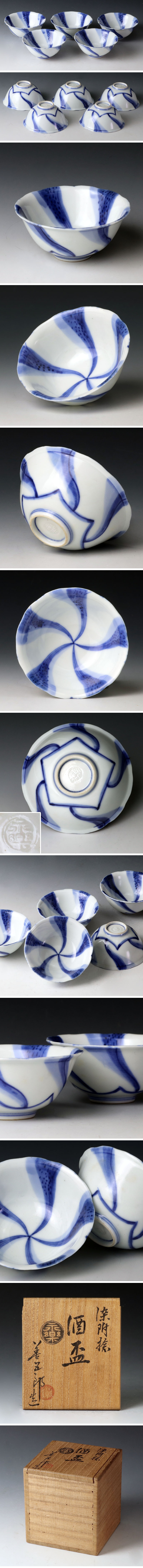 | 【古美味】十五代永楽善五郎(正全)造 染付捻酒盃 五客 茶道具 保証品 |