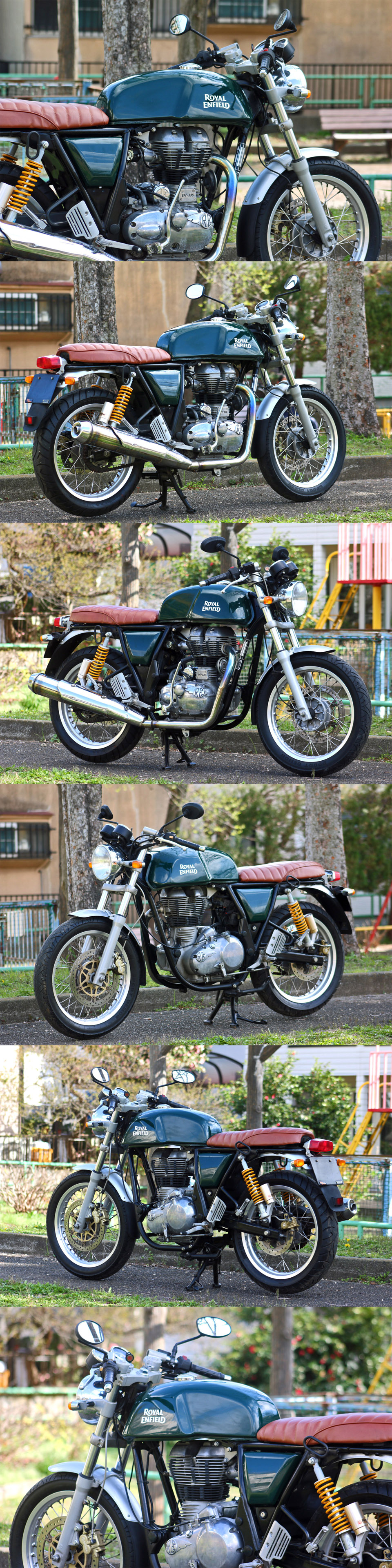 | エンジンはロイヤルエンフィールドの500ccシリーズと 同じユニットコンストラクションタイプ(エンジンとミッションが一体式)の空冷単気筒OHVを採用。 排気量を535ccへと拡大しつつ吸排気系を見直し、F.I.マップも変更することで出力向上を果たすとともに、 マフラーも専用のスポーツタイプとすることでパンチの効いたパワー感と、歯切れの良いサウンドを実現している。 また、カフェレーサーとしての正統的な乗り味を忠実に再現するため、 英国ハリス・パフォーマンス社との共同開発による、新設計のダブルクレードルフレームを新たに採用。 足回りにはφ41mm正立フォークとパイオリ製ツインショック、ブレンボ製前後ディスクブレーキ、 ピレリタイヤのスポーツデーモンを装備するなど充実。 トラディショナルな雰囲気の中にも現代的な走りのパフォーマンスが与えられています。 |