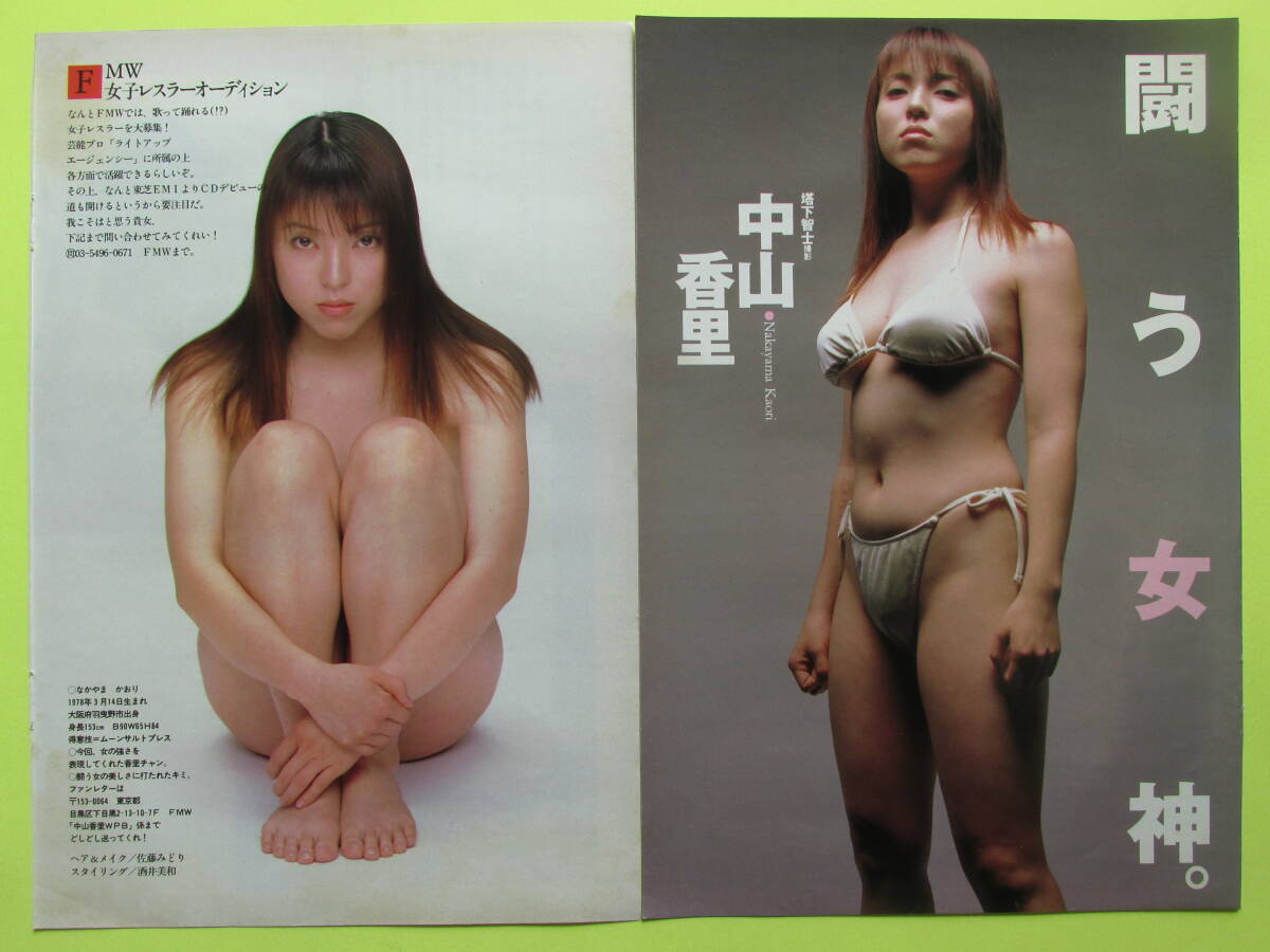 464切り抜き 中山香里 女子プロレスラー セミヌード風 手ブラ ビキニ 巨乳 谷間 1999年 6P  送料140円~