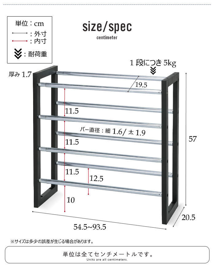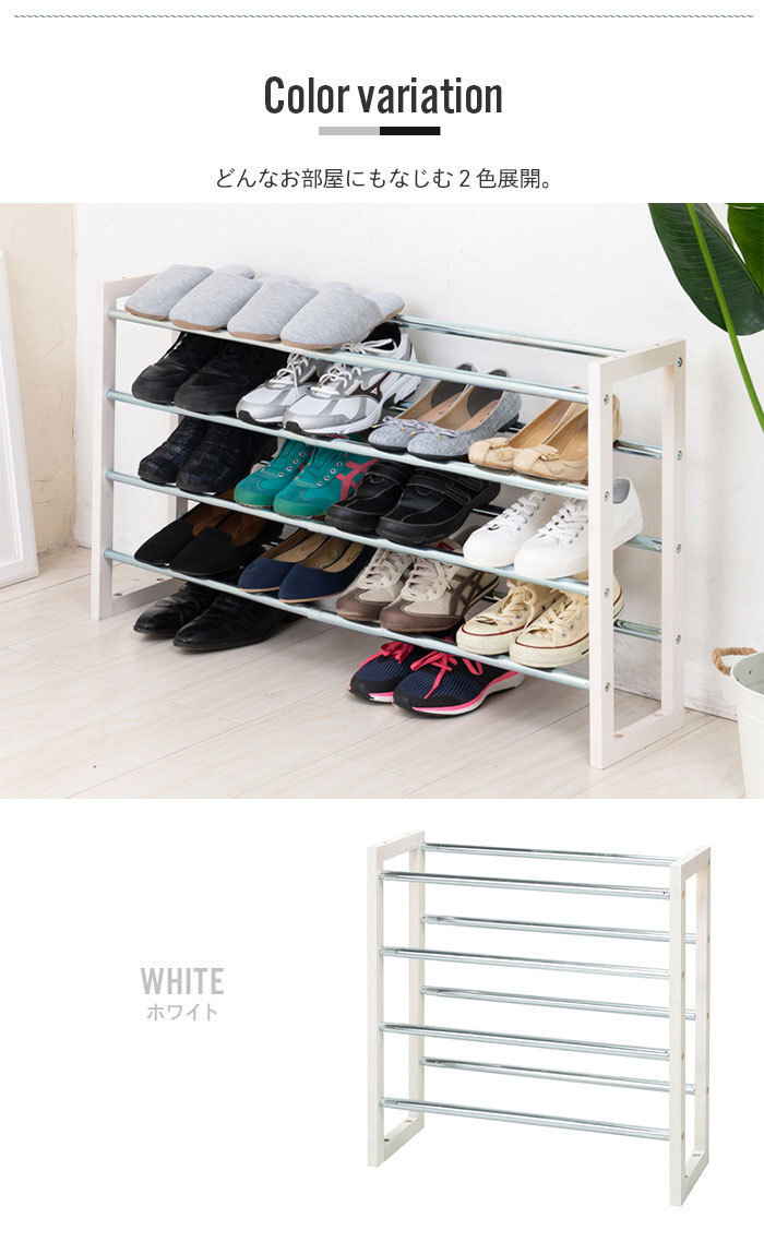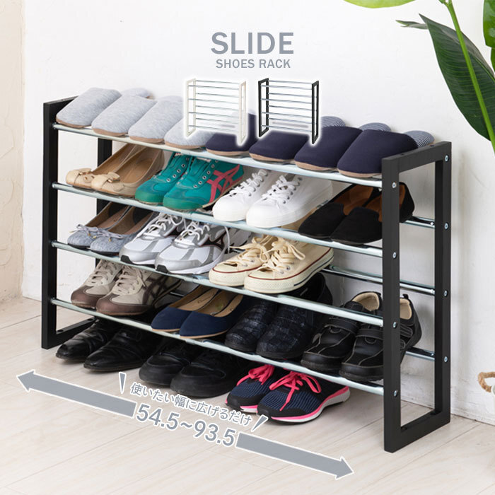 | 商品名 | シューズラック 4段 伸縮 幅54.5~93.5cm 靴収納 下駄箱 くつ 収納 靴箱 大容量 玄関 靴 おしゃれ フレーム ブラック M5-MGKNG00064BK |