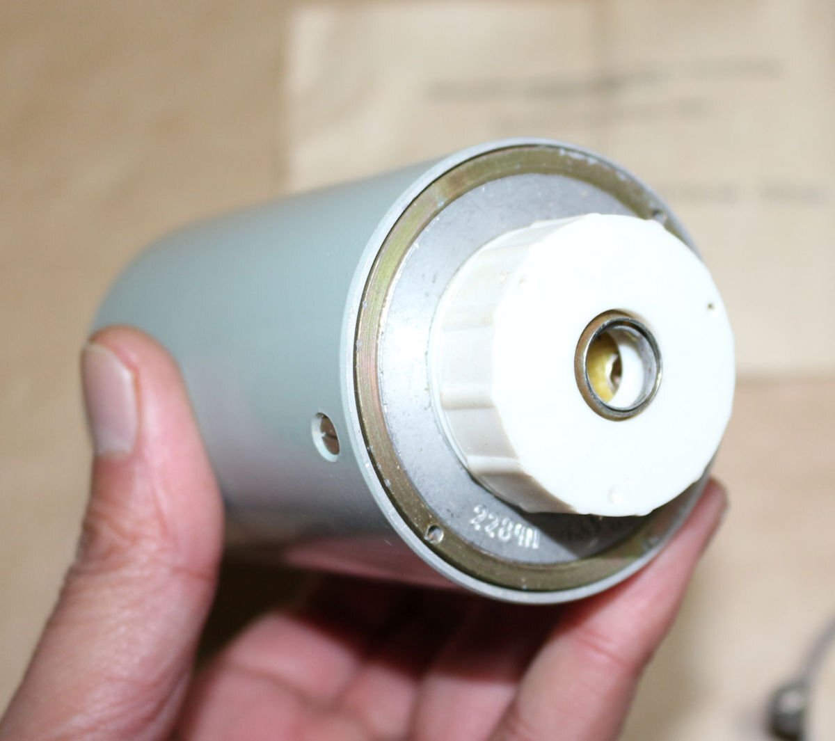 | 商品説明 | ロシア軍用 メカ式積算時間計 新品未使用動作確認済 ライトグレー空色系です。 20~24Vでカチカチ音がして動作します。 端子1 +24V 端子3 マイナス 余談 旧ソロシア軍で極秘に開発されていたトランジスタ式の コンピューターに使われていたそうです。 (その部隊に所属していた兵士の話) その他、軍用機器に使われていた物です。 本品には専用の取付金具がつきます。 1式 1セットのお値段です。 長期保管の未使用新品で取付金具はグリスで汚れています。 シリアル管理検品された取説検査表がつきます。 当時個別に動作確認しており少し時間が 進んでおります。 サイズは直径約60mm 全長約110mm 画像は流用しております。 後ろのケーブルキャップの色が変わる事が有ます |