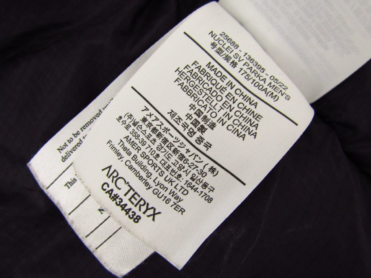 ARC’TERYX アークテリクス Nuclei SV Parka 中綿ジャケット ナイロンパーカー 25688 136395 サイズ:M | |||||||