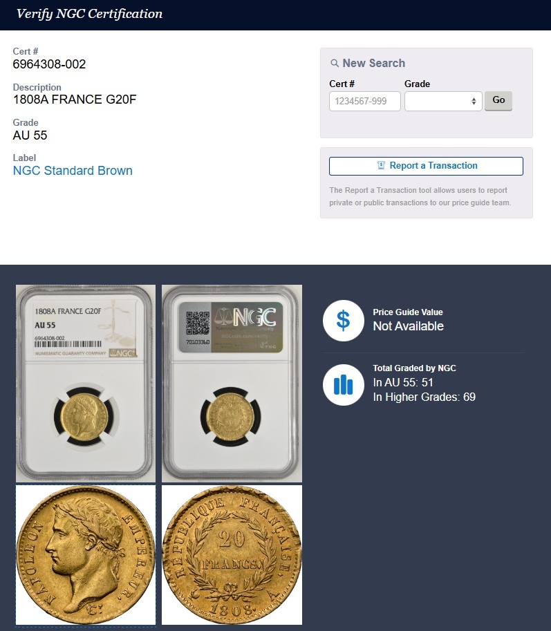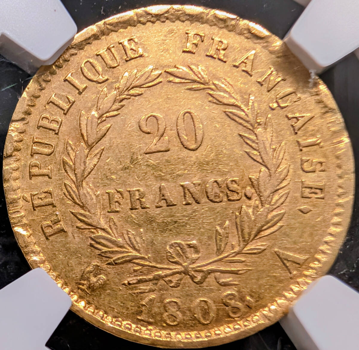 ★英雄 有能 ナポレオン1世★1808年 フランス NGC AU55 20フラン 金貨 皇帝 アンティークコイン 無冠 資産保全