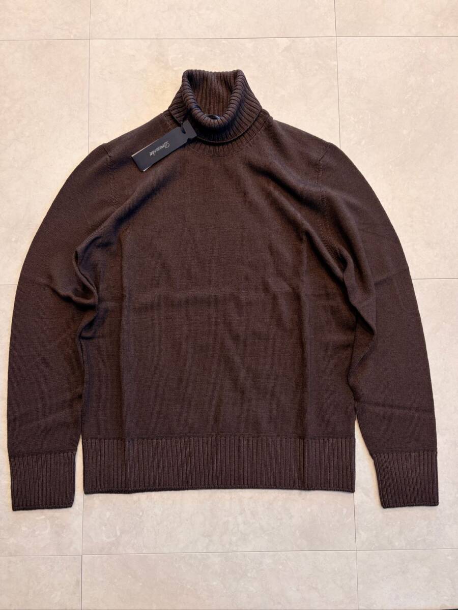 【Drumohr/ドルモア】 1773年創業、スコットランドで誕生した世界最古のニットブランド〈ドルモア〉。 熟練の職人技とモダンな感性を融合し、クラシックでありながら現代的な佇まいを放つコレクションを展開しています。イタリア生産に移行した現在も、その丁寧なものづくりと上質な素材使いは変わらず、多くのエグゼクティブやファッショニスタを魅了し続けています。 本作は、〈ドルモア〉を代表するエクストラファインメリノウールを使用したミドルゲージのタートルネックニット。 しなやかで繊細な糸をゆるやかに編み上げ、上品な光沢と柔らかな肌触りを実現しています。さらに、ウォッシュド加工を施すことで、ニット全体に自然な風合いとこなれた表情をプラス。 まるで長年愛用してきたかのような、リラックス感のある着心地が魅力です。 適度な厚みがありながらも軽やかで、ジャケットやブルゾンのインナーとしても重宝。 一枚で着てもサマになるシルエットは、イタリアンニットならではの計算されたバランス。 ネックの高さも程よく、折り返しても美しく収まり、首元に品のあるニュアンスを添えます。 ドレススタイルからカジュアルまで幅広く活躍する、ワードローブの定番にふさわしい一着。 上質な素材と洗練された仕立てが織りなす、〈ドルモア〉ならではのタイムレスな魅力をぜひ体感してください。 ブランド:Drumohr / ドルモア 素材:エクストラファインメリノウール100% サイズ:50 着丈:66cm 袖丈:64cm 肩幅:40cm 身幅:54cm ※実寸値となりますが誤差はご了承ください。 ※迅速なお取引を心がけさせていただいております。オークション終了より24時間以内にご連絡をいただけない場合、土日祝日を除き48時間以内にお支払い手続きをいただけない場合は、お取引の意思なしと判断させていただき取引キャンセルとさせていただきます。 万が一上記が不可の場合は事前にご連絡いただくか、入札をお控えいただきますようお願い申し上げます。 ※なるべく現物に近いお色味で撮影するよう心掛けておりますが、閲覧環境の違い等によって違いが出る場合があります。 差し替えトラブルを避ける意味でも上述した旨含め、イメージと違う等での返品は受け付けておりません。 百貨店並みのサービスを求める方や神経質な方の入札はお控えいただきますようお願い申し上げます。 また、差替えやSNS使用後の返品等を防止するためためにも、原則返品には応じられません。 疑問点や心配事等がある場合は入札前に質問欄にてお問い合わせください。 ※当方が出品するすべての商品は間違いなく本物ブランド品となりますので、安心してオークションにご参加ください。 万が一、第三者等により偽物と判断された場合、商品の返品、お支払いただきました全額を返金をいたします。 |