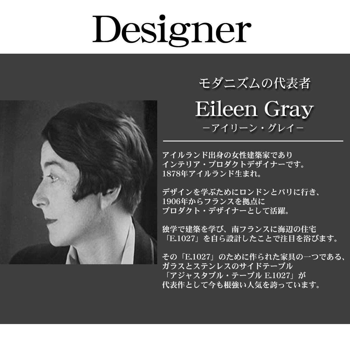 ![]() 快適さを秘めたチェア。 Eileen Gray / アイリーン・グレイが1932年に 仏カステラールにある彼女のセカンドハウスのテラスのためにデザインしたロクエブリューンチェア。 元々の張地はブルーのキャンバス地でした。 彼女は屋内仕様向けに、まったく同じラインを持ちつつ、張地をレザー仕上げにしたバージョンを製作。 それが結果として、30年代を代表する新たなクラシックデザインとなる「ロクエブリューン」を生み出しました。 座り心地はもちろんのこと、レースアップを施した後ろ姿は、視覚的にも優雅で心地よい空間をつくり上げます。 シンプルな作りながら座り心地が快適なのは、 計算された深い座面と背もたれ部の自然なクッション性によるものです。 細部までこだわり抜いて作られた「ロクエブリューン」 是非とも体験してみてはいかがでしょう? ■商品詳細 サイズ(約):幅46cm*奥行き54cm*高さ78cm*座面高47.5cm*座面奥行き36cm 重量(約):5.5kg 材質: フレーム:スチール(クロームメッキ) 背座面:ハイドレザー デザイナー:Eileen Gray/アイリーン・グレイ |