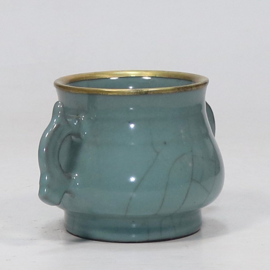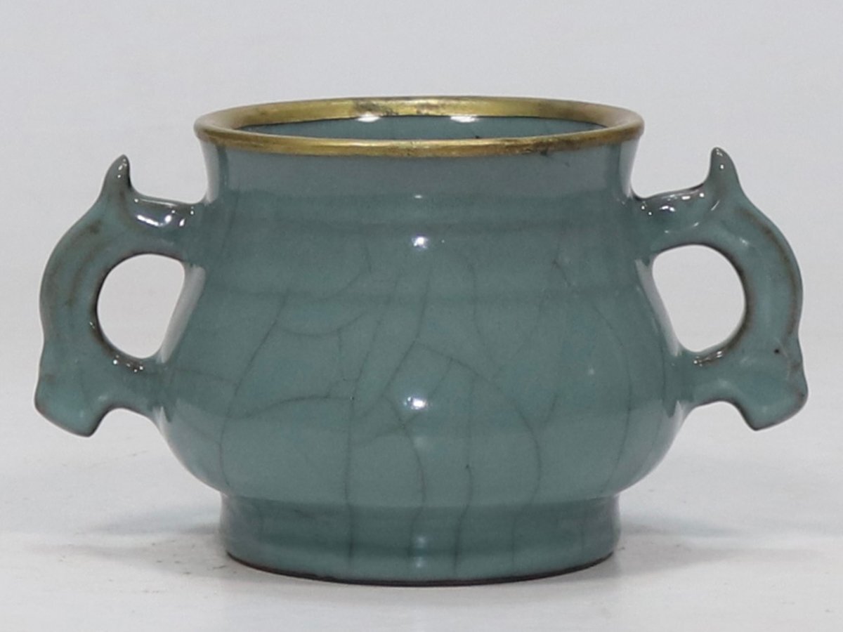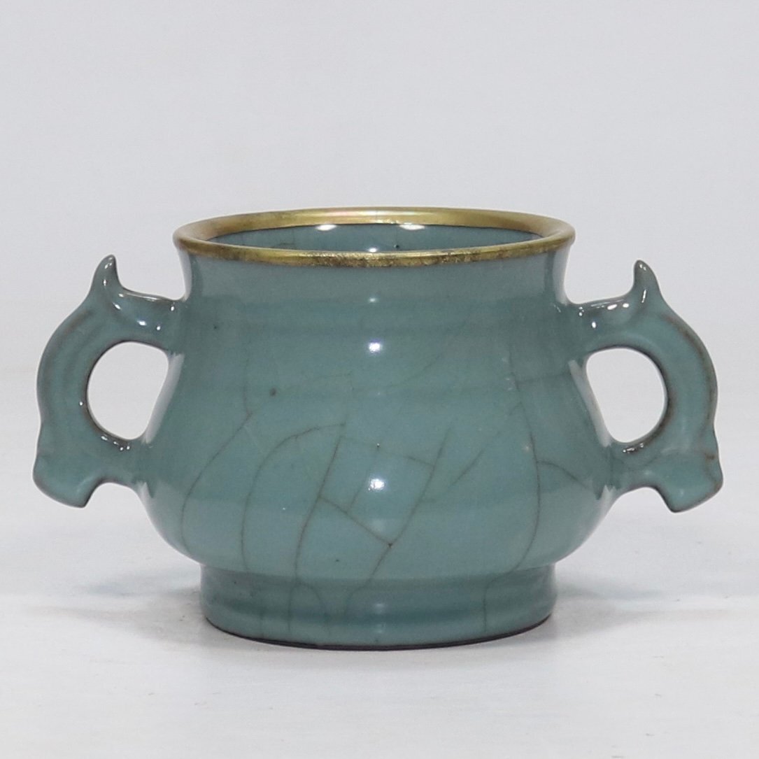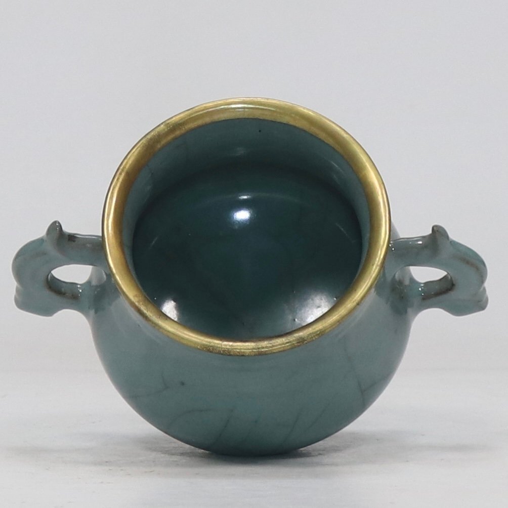 【安】南宋時代 官窯青釉包金口双耳炉 唐瓷 染付 古陶瓷 中国古美術 古董品 234 サイズ(約寸) |