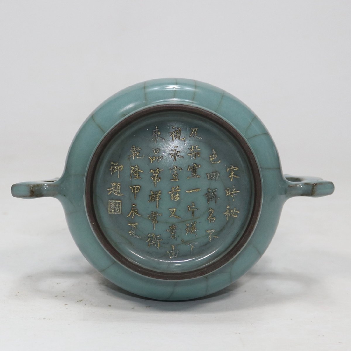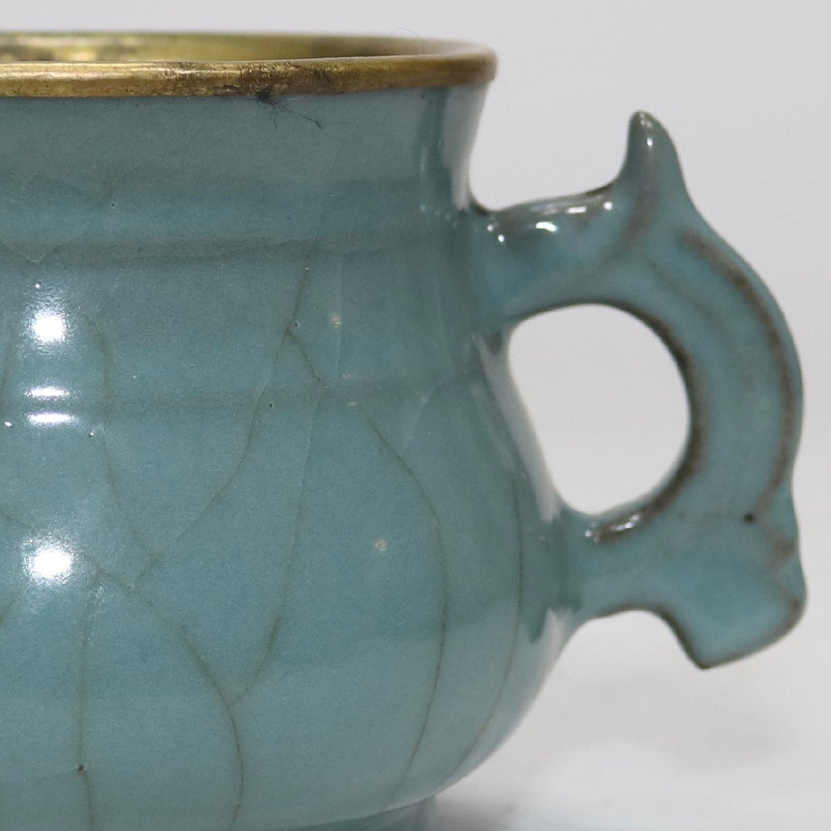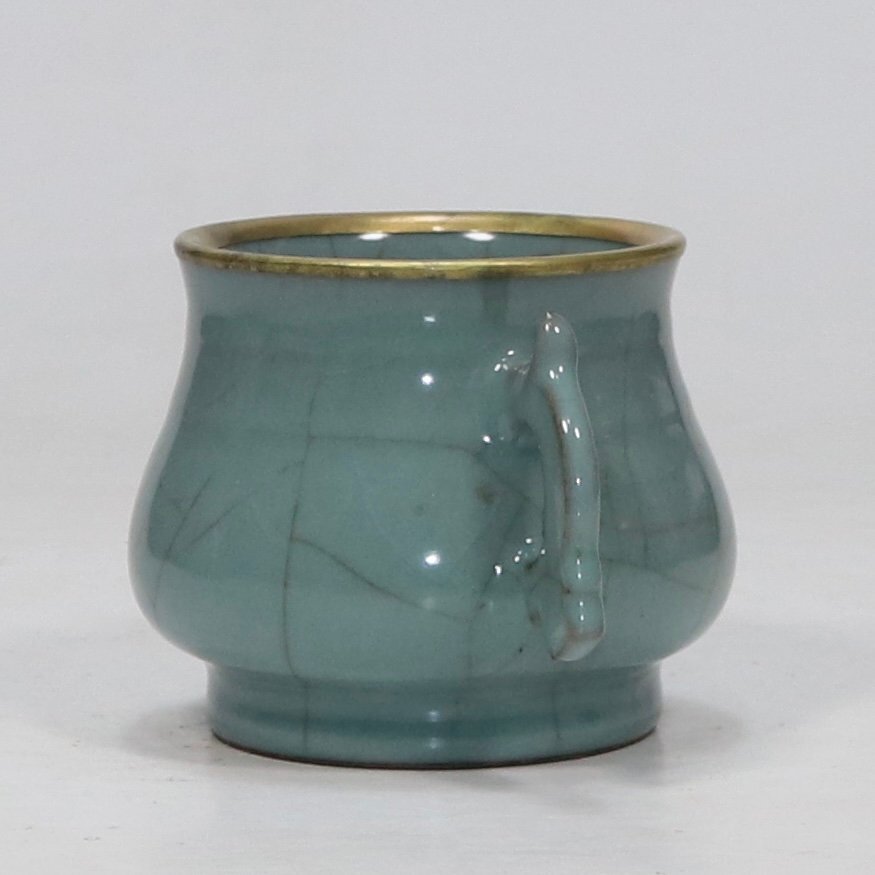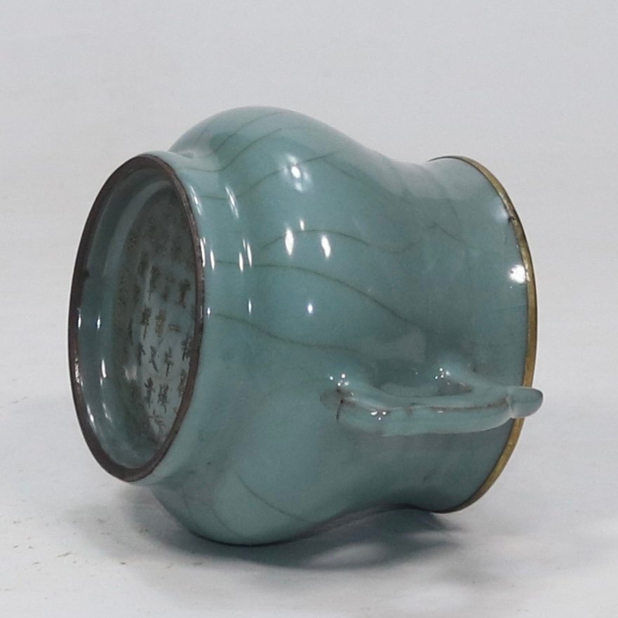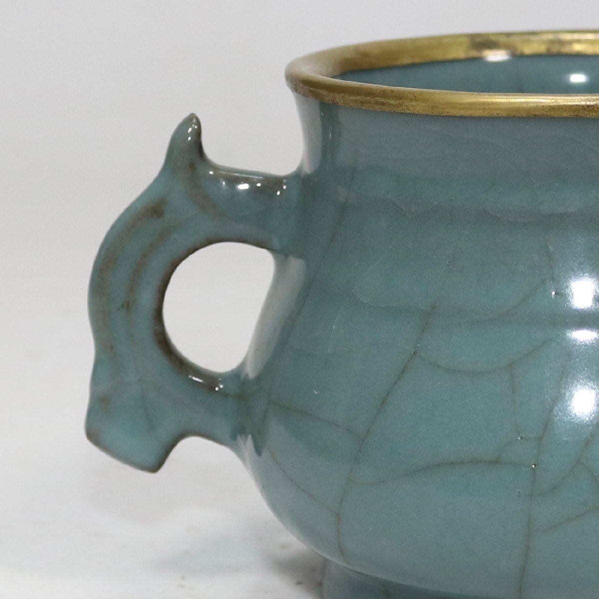 【安】南宋時代 官窯青釉包金口双耳炉 唐瓷 染付 古陶瓷 中国古美術 古董品 234 サイズ(約寸) |