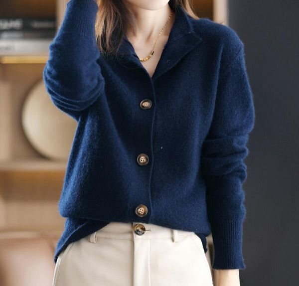 フリーサイズ■秋冬新品高品質 おしゃれ 大人ミンクカシミヤ混 暖かいゆったり 20304050代ストレッチ ニットセーター カーディガン★紺 [浏览原始页面]