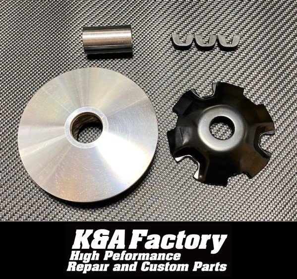 | 駆動系チューニングの定番のハイスピードプーリーキット 当店別出品のセット商品からウエイトローラーやワッシャー等、セッティングパーツを省き低コストに抑えたセット内容となります。 ご自身でセッティングパーツをお持ちの方、または当店キットのリペアにおススメです。 | ||