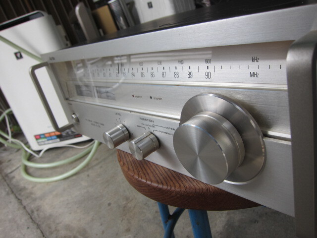 | 商品説明 | ※動作確認 ・通電確認・ボタン機能確認・商品状態は画像をよくご覧ください。 ご覧いただきありがとうございます 式FM/AMチューナー 回路方式スーパーヘテロダイン方式 受信周波数76MHz~90MHz 実用感度1.9μV(IHF) 高調波歪率stereo:0.3% mono:0.2% SN比stereo:68dB mono:73dB 周波数特性30Hz~15kHz ±1dB 実効選択度65dB イメージ妨害比55dB IF妨害比80dB キャプチャーレシオ1.0dB スプリアス妨害比80dB AM抑圧比50dB ステレオセパレーション40dB(1kHz) 定格出力可変:0~600mV アンテナ端子300Ω平衡、75Ω不平衡 受信周波数525kHz~1,605kHz 実用感度250μV/1m(IHF) イメージ妨害比40dB IF妨害比40dB SN比45dB 選択度25dB 使用半導体トランジスタ:10個 FET:1個 ダイオード:9個 LED:2個 IC:2個 電源電圧AC100V、50Hz/60Hz 消費電力8W 外形寸法幅400x高さ146x奥行318mm 重量6.1kg 感度を落とさずにワイドレンジ低歪率再生を実現するよう設計されたFM/AMチューナー。 フロントエンド部にはFM3連バリコンとFETを使用しており、感度を高めています。また、音質に影響を与える中間周波数部は性能の良く揃ったICを採用しており、群遅延特性をフラットにしつつ位相の進み遅れを少なくしています。 ステレオ復調回路にはLC回路の性能と安定性を高めたPLL ICを採用しています。 周波数特性に悪影響を与えないローパスフィルターを採用しています。 このフィルターでは周波数レンジに悪影響を与える残留キャリアをカットしています。 シグナルとチューニングが独立した2メーター構成を採用しています。 入力セレクターにはFMミューティングスイッチを装備しています。 固定と可変の2系統の出力端子を搭載しています。 パワーインジケーターやステレオインジケーターを搭載しています。 ラックの出し入れを楽にするパネルハンドルを装備しています。 | ||