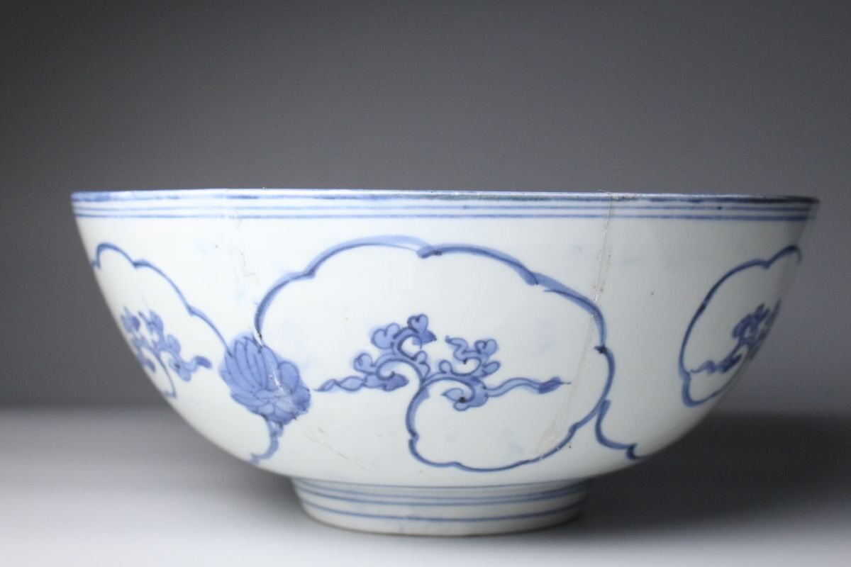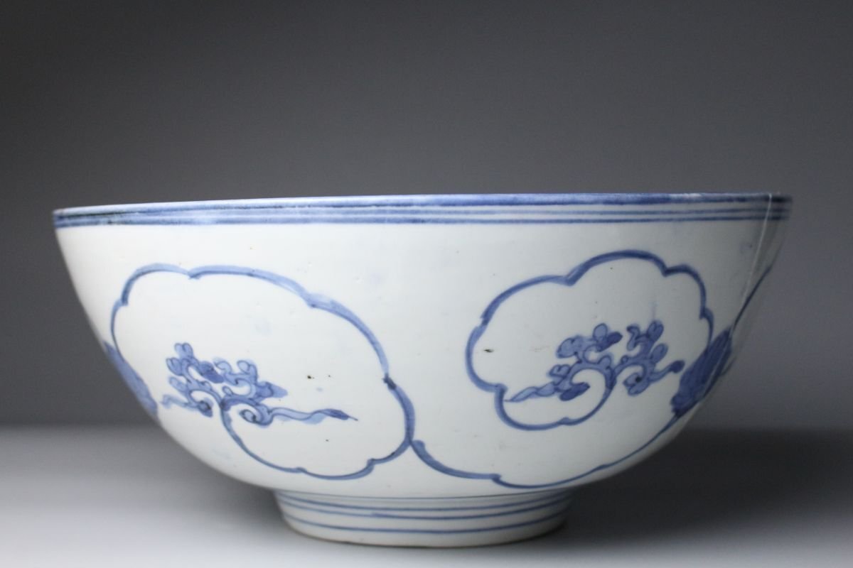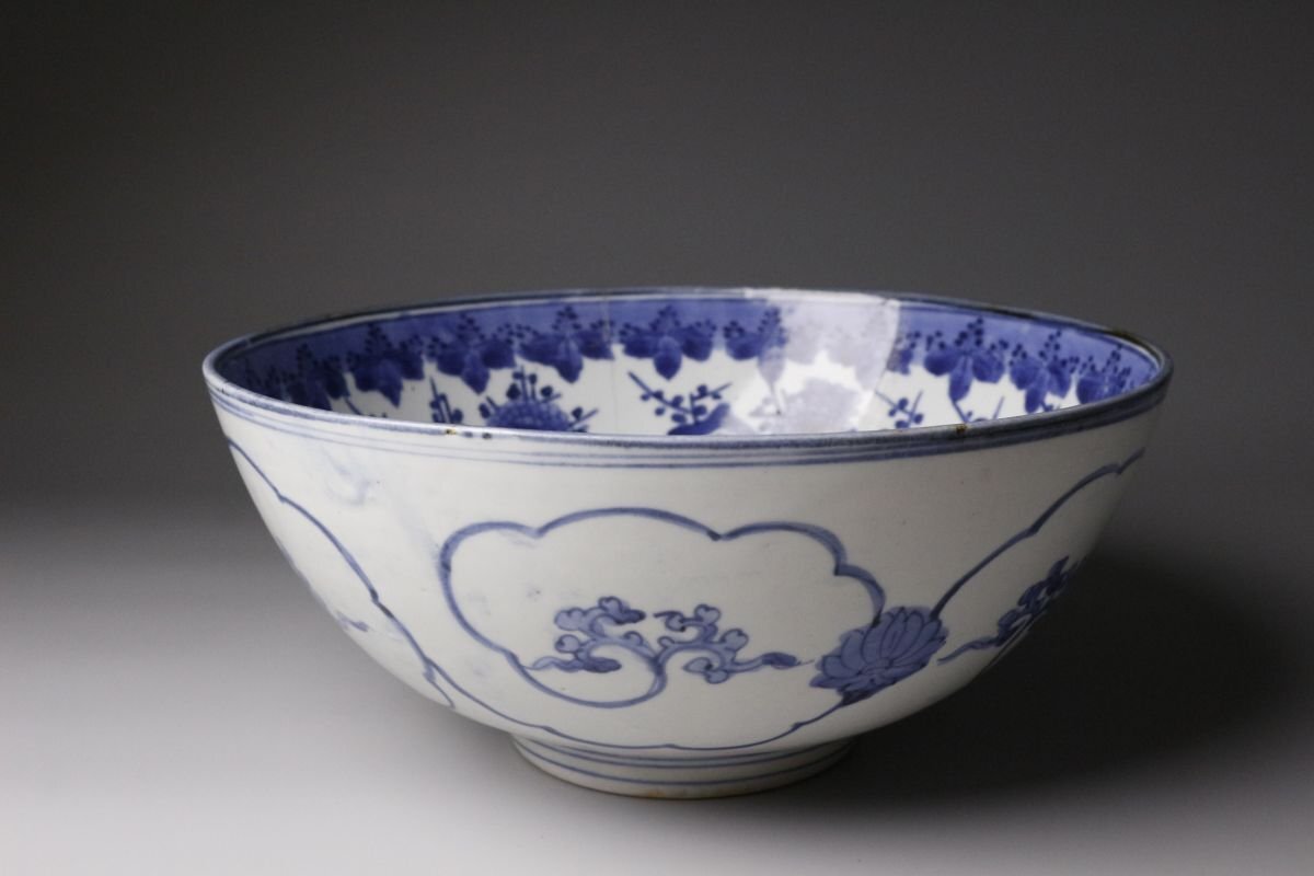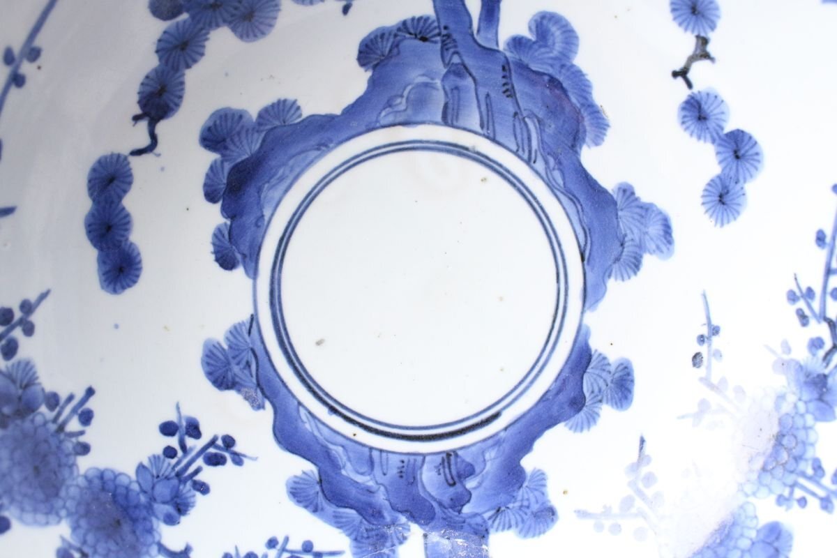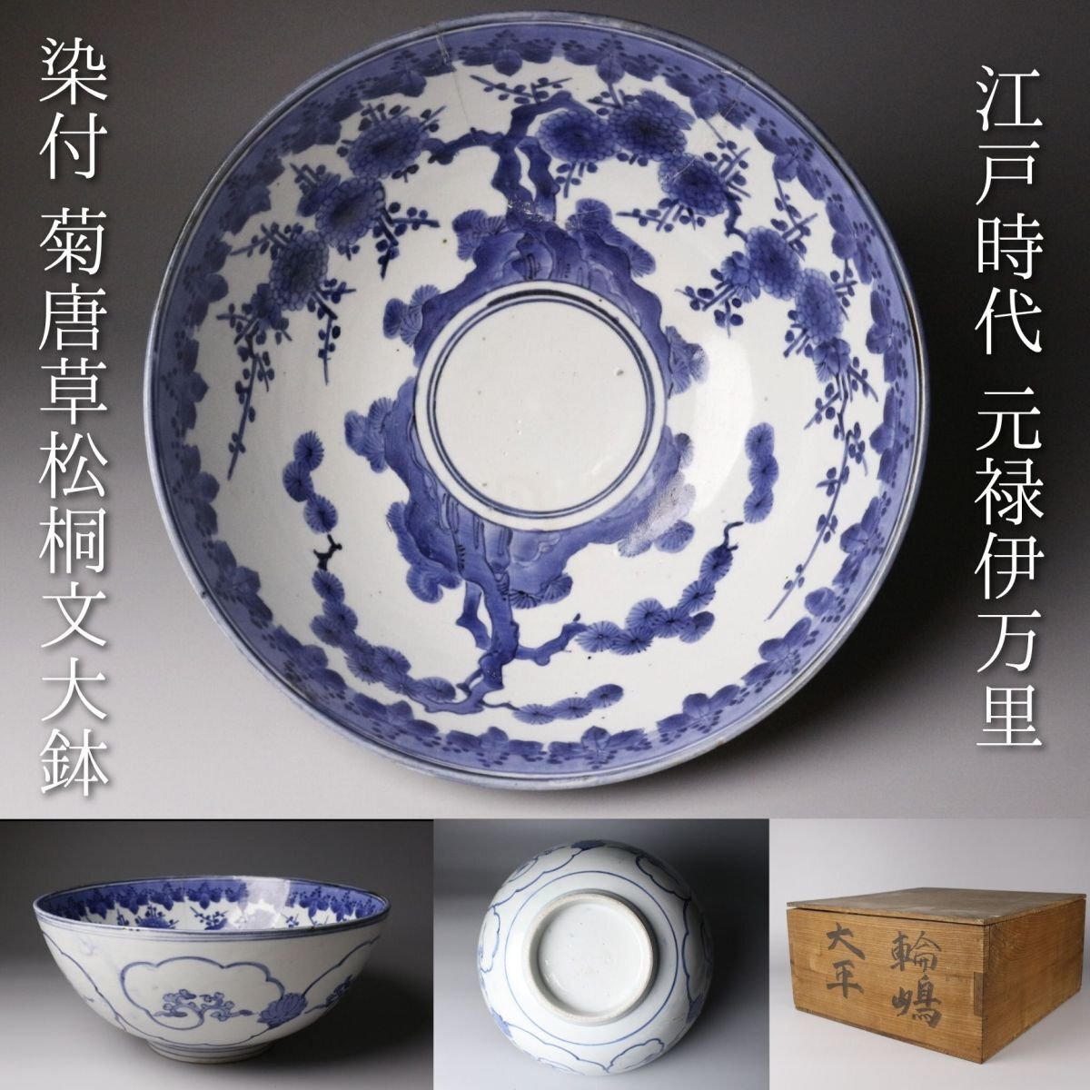 [.W]25.10 25102917T* * * 商品詳細 * * * ここでしか出逢うことのできない唯一の美をご紹介させて頂きます。 江戸の雅を映す、元禄伊万里の美 気品あふれる藍の染付に、 側面の菊唐草と内側の松桐文が織りなす格調高い意匠。 堂々たる大鉢は、食卓を飾る器としてはもちろん、 飾り鉢としても存在感を放ちます。 元禄期の華やかさと職人の精緻な手仕事が調和した逸品。 時代を超えて愛される“伊万里”の美を、どうぞご堪能ください。 ■商品内容/ 鉢、箱 ■サイズ/横28.5㎝×高12.5㎝ 箱:横31㎝×高15㎝×奥行31㎝ ■状態/ スレ、傷、汚れ、直しがございます。 ※写真にてご確認、ご了承の上ご入札下さい。