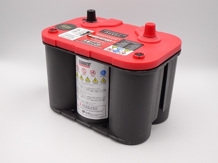 | オプティマバッテリー レッドトップ / OPTIMA BATTERIES NEWモデル 1050U / RTU4.2 Rタイプ D端子(大ポール) 予備端子(サイドターミナル)付き 大人気の高性能スターターバッテリーです。 正規品 新品 安心のメーカー3年製品保証付。(但し エンジン始動用としてのみ) 予備端子(サイドターミナル)にはアーシング、オーディオ、電装品がボルトオンで接続可能で便利です。 オプション追加で65D26R 75D26R 85D26R 90D26R 120D26R に対応 オプション D26L/R国産車取付キット (基本的に国産車の場合必要です) ・ハイトアダプター 純正やそれに準ずるバッテリーに比べて、オプティマ バッテリーは低く設計されています。 その結果、ほとんどがハイトアダプターがないとつけ付けれません。 ・オフセットターミナル GTP-044(+、-セット) バッテリーによってはターミナル(ポール)が内側に付いているため、純正位置に近づける必要があります。 場合によって-側は使用しなくて済む事もあります。 大ポール(optima側)→大ポール(車両側) +-セット ・絶縁被覆カバー GTP-011 オプション ★サイドターミナル(予備端子)用取付ボルト2個/組(Uタイプ用)GTP-030 Rタイプ 予備端子付き D端子(大ポール) 電圧 12V 20時間率容量50Ah コールドクランクアンペア 815CCA クランクアンペア 1000CA 内部抵抗 3.3mΩ リザーブキャパシティー 104分 サイクル寿命 50サイクル エンジン始動可能回数 12000回 幅 奥行 総高さ/箱高さ 254W x 174D x 199/170H 重量 18.5Kg BCI Group : 34/78 オプティマ専用充電器も取り扱ってます。 オプション等詳細は 当店のサイトへ 適合バッテリー専用お問い合わせフォーム(SSL使用で安心です) OPTIMA本国サイト | |||||||||||||||||||||||||||||||||||||||||||