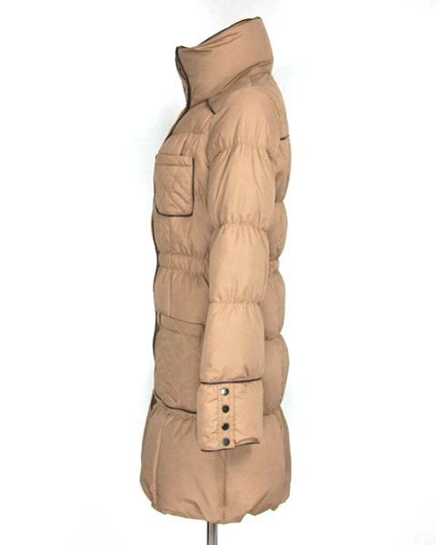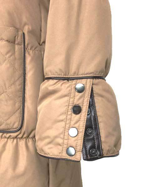 | 使いやすいベージュカラーのダウンコート。細身のデザインなので、着膨れする事なく、スッキリと着て頂けます。パイピングがアクセントになっていてオシャレですよ。袖口は釦で開閉できるようになっていて、釦を開けると印象を変える事ができますよ。 |